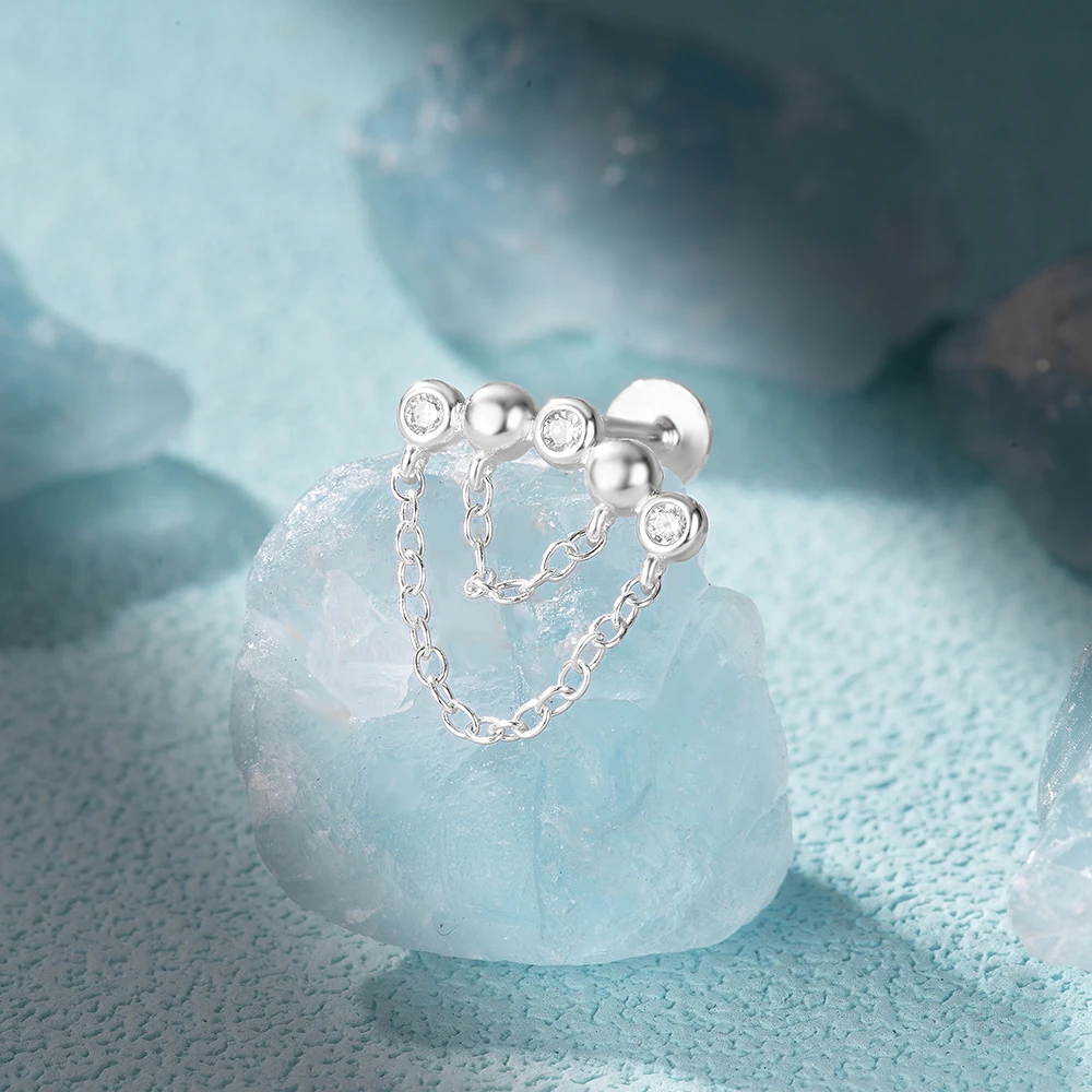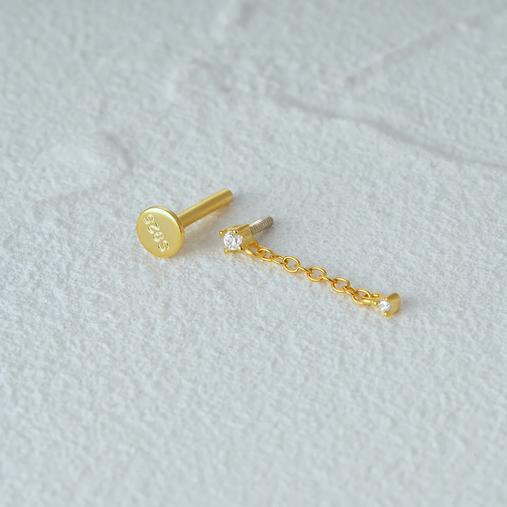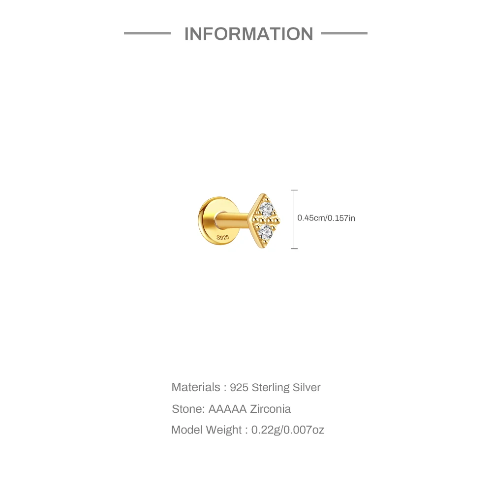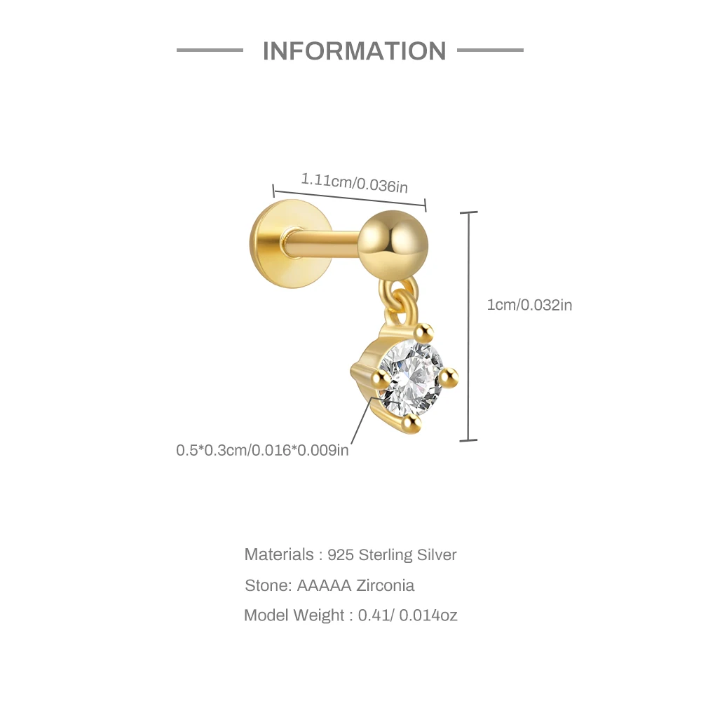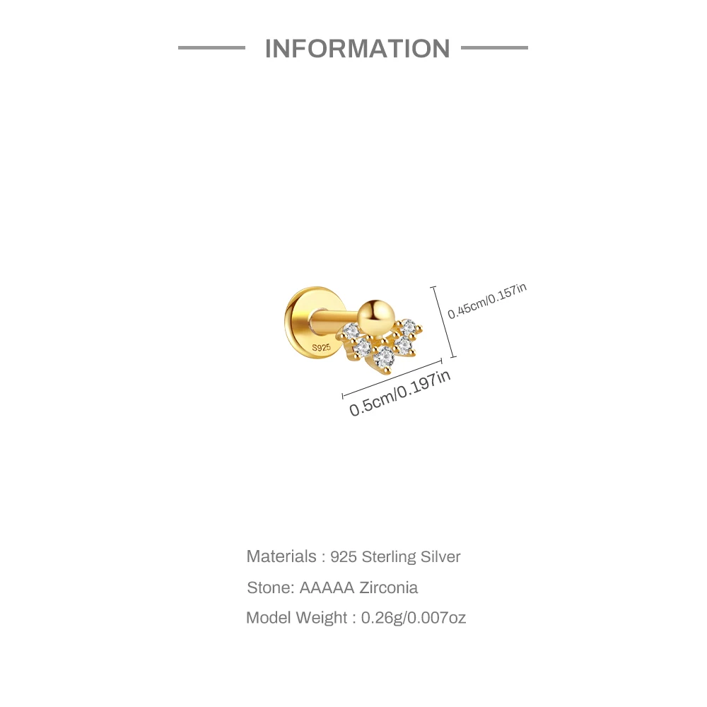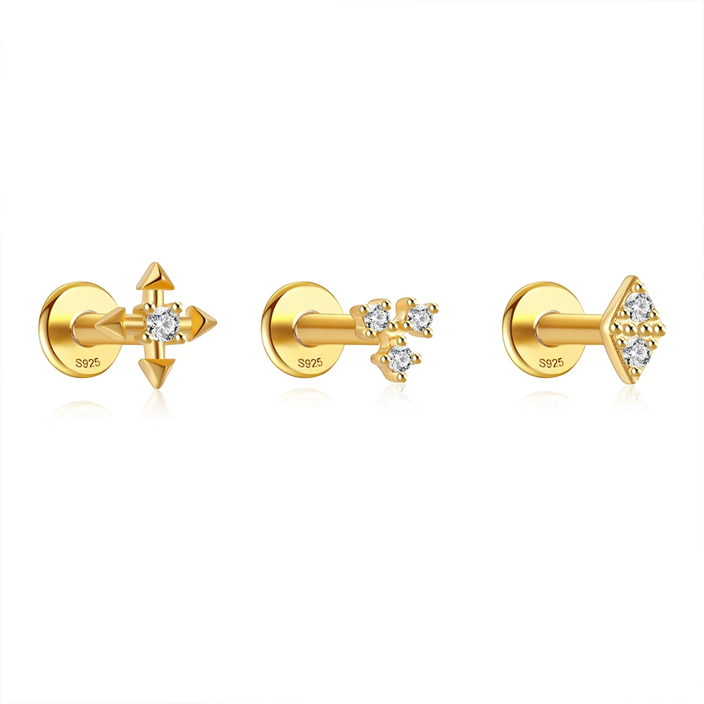CANNER S925 Sterling Silver Mini Flat Threaded Stud Earring Piercing Pendientes Helix Earrings For Women Ear Bone Jewelry Gifts