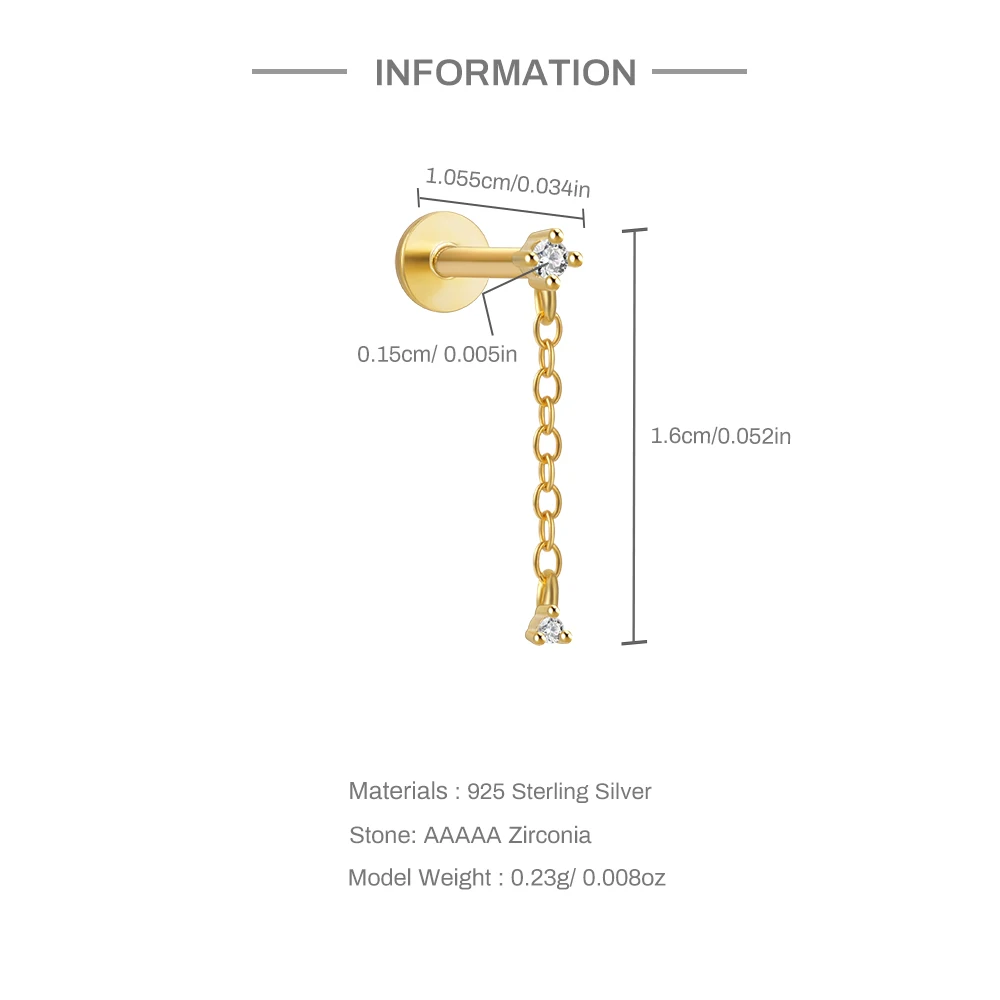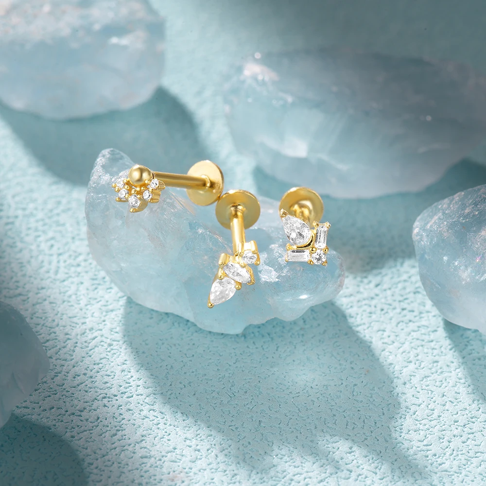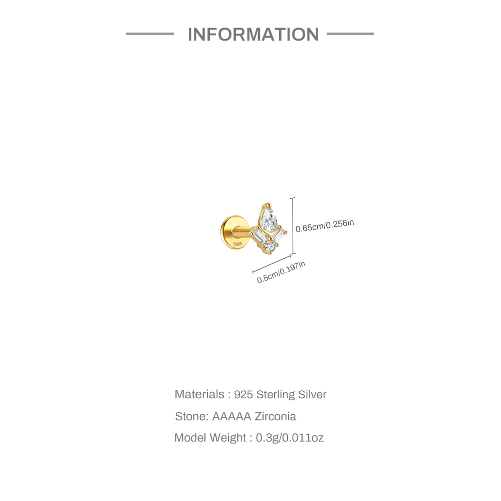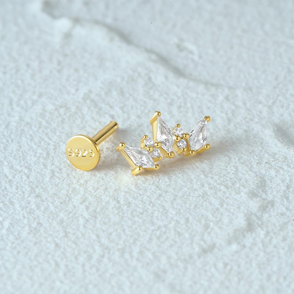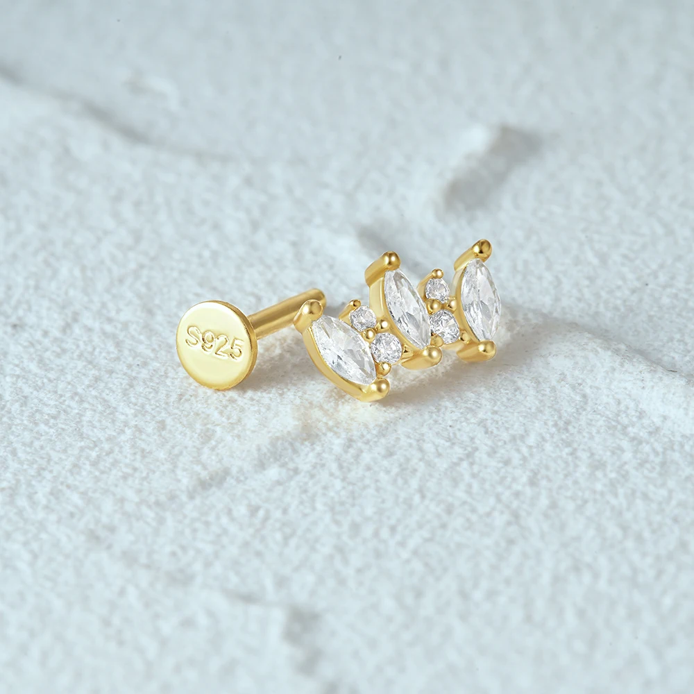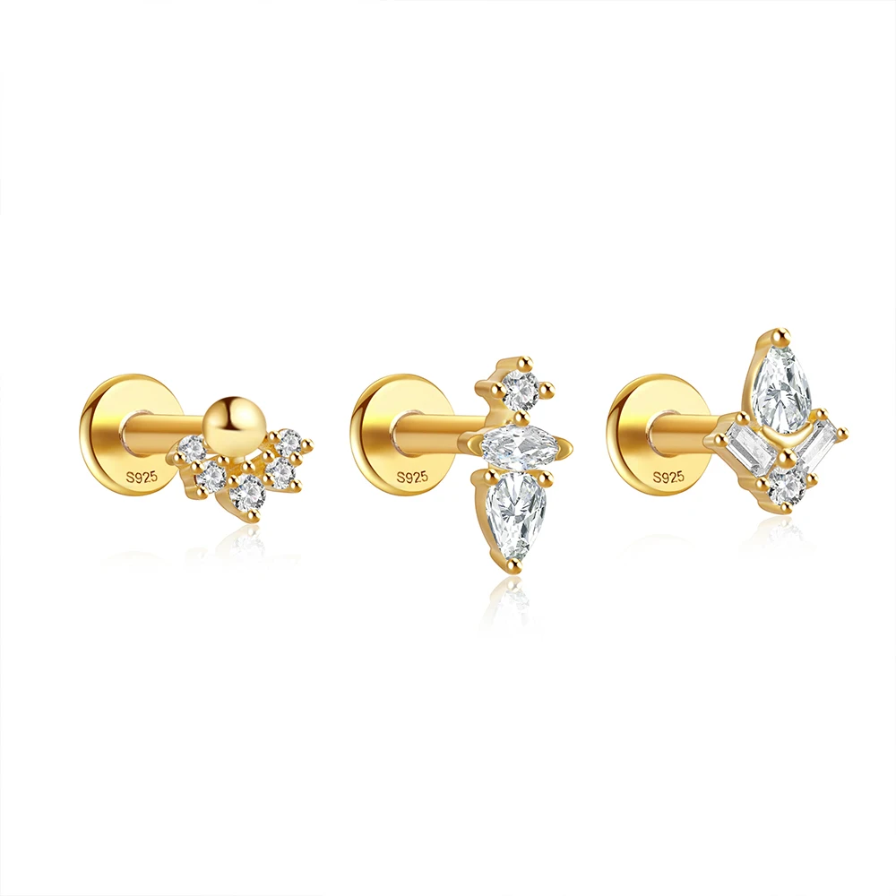 CANNER S925 Sterling Silver Mini Flat Threaded Stud Earring Piercing Pendientes Helix Earrings For Women Ear Bone Jewelry Gifts
