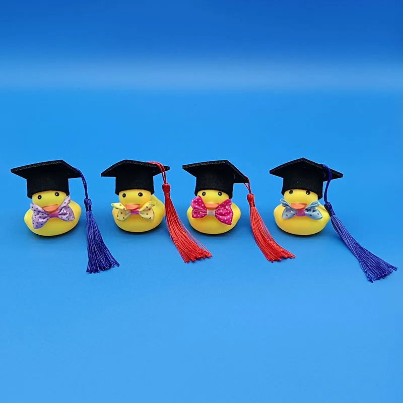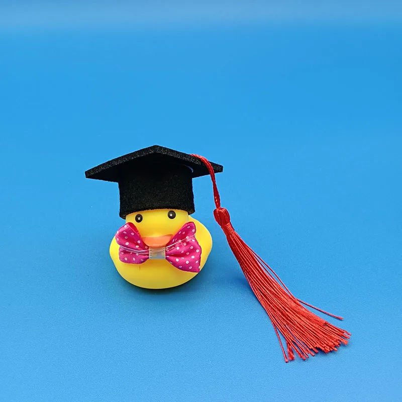 Car Dashboard Ornament Yellow Duck Cute Bachelor's Hat Duck with Red and Blue Tassel Hat Spike Decoration for Graduation Season