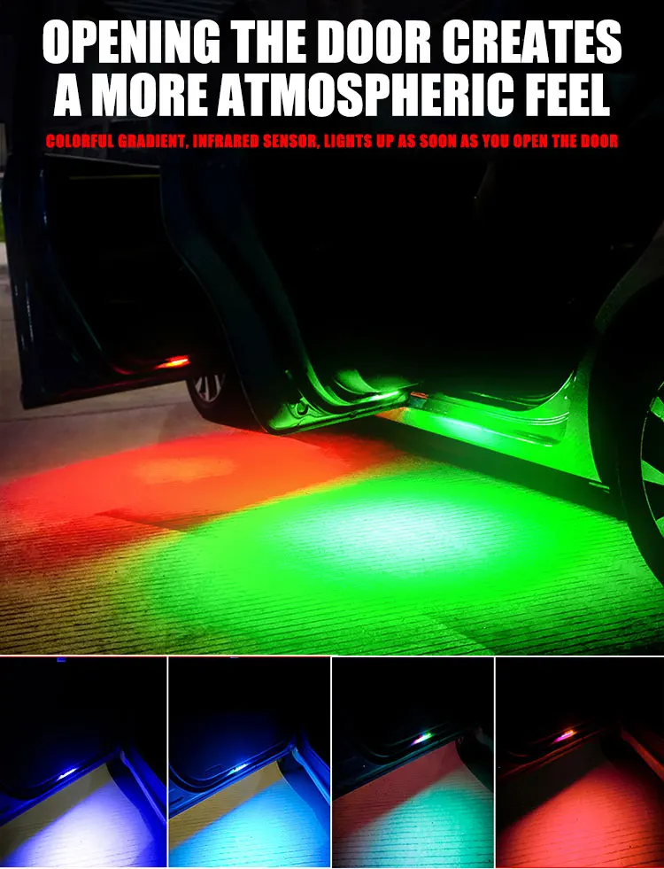 Car Door Welcome Light RGB/White LED Atmosphere Light Wireless Open Door Night Lighting Anti-collision Lamp USB Charging