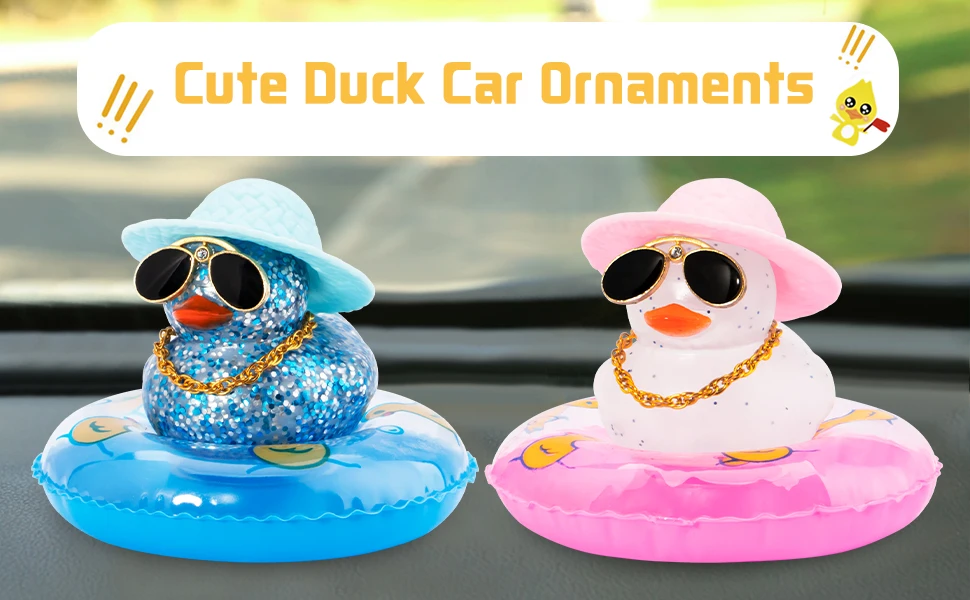 Car Duck Ornament Dashboard Decorations Rubber Duck Car for Car Dashboard Accessories with Swim Ring Sunglasses Hat and Necklace