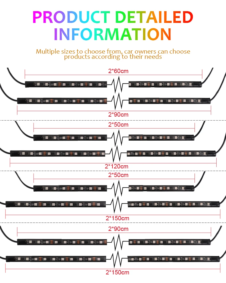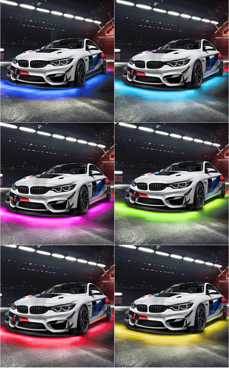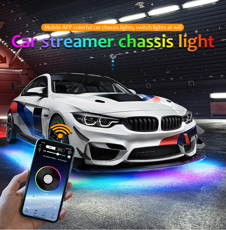 SOUND ACTIVE- The LED under car glow system is equipped with sound sensors that lets the LED lights synchronized with music beat.The LED music light strip follows the beat and adjusts flashing to fit the strength of the sound.