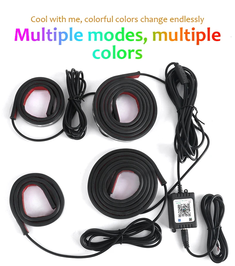 Car Flexible Strip Light LED Underbody APP Control RGB Neon Lights Dream Color Auto Decorative Ambient Atmosphere Lamp 12V
