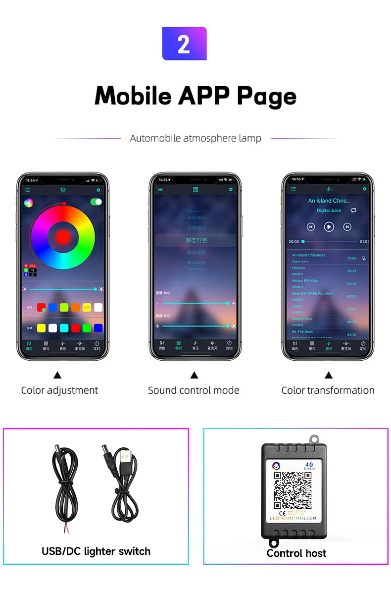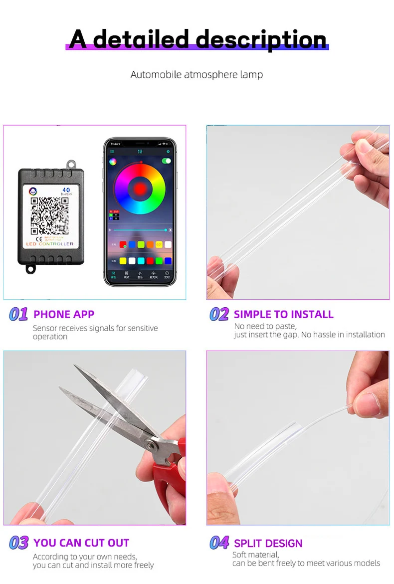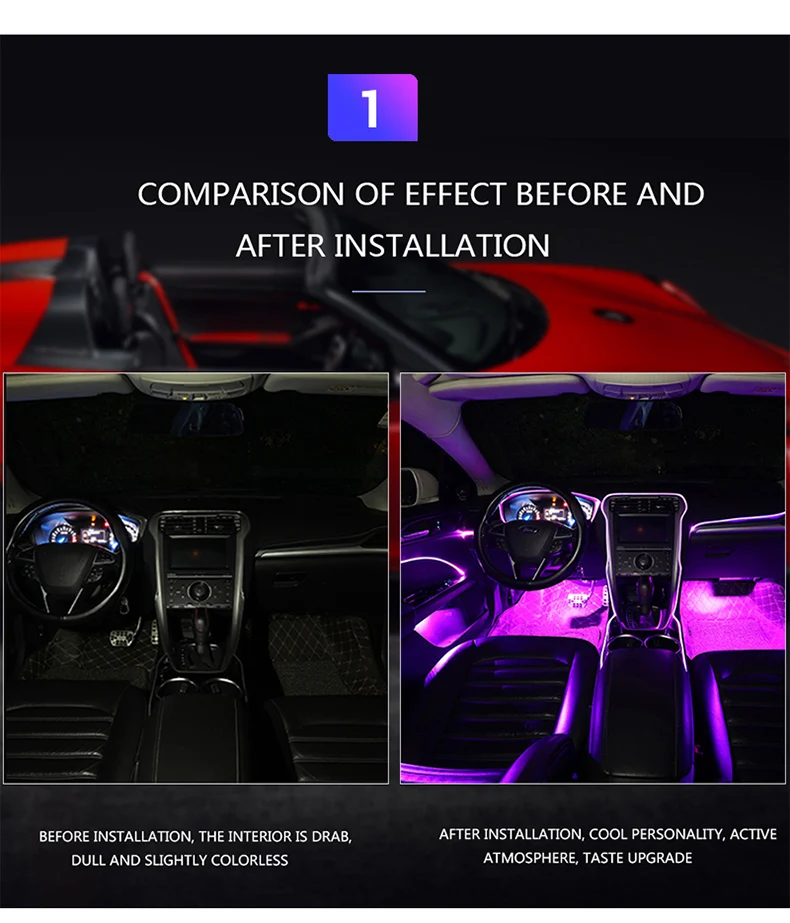 • Multiple Modes :The product offers multiple modes of lighting, allowing you to create different atmospheres in your car.