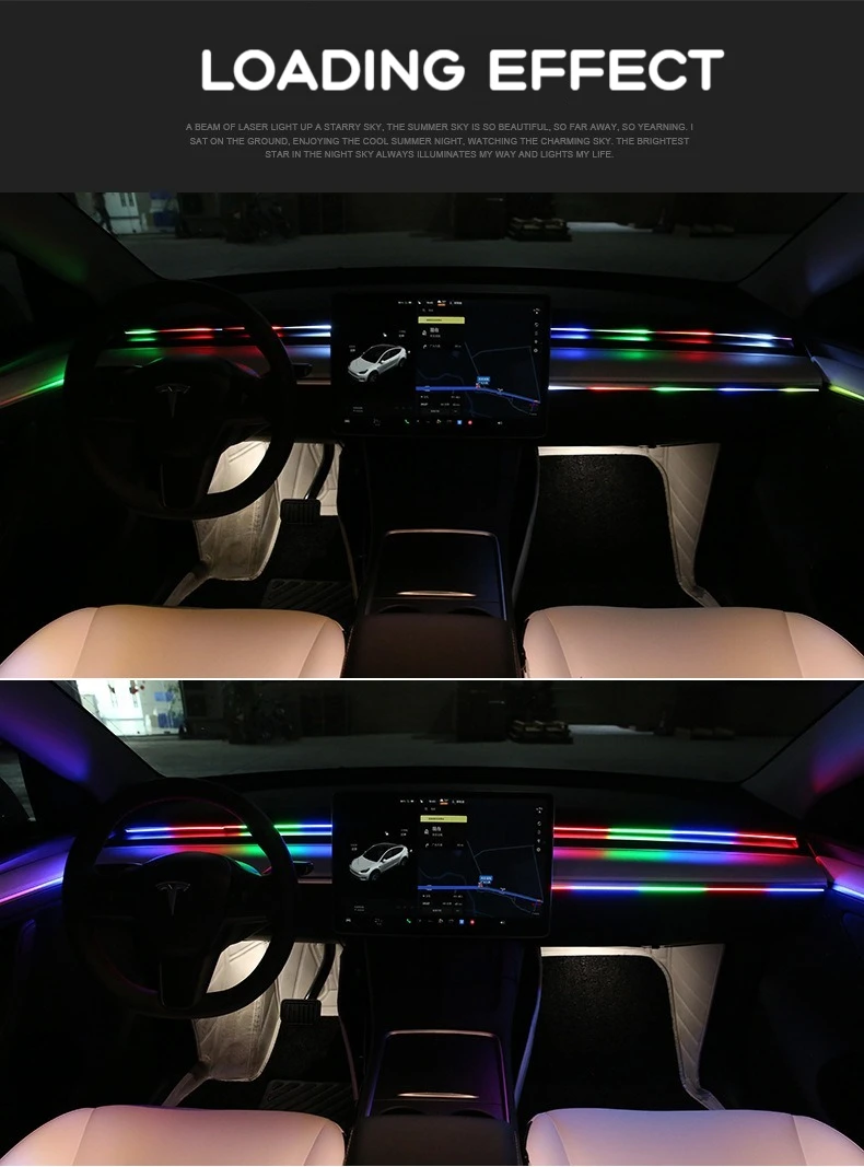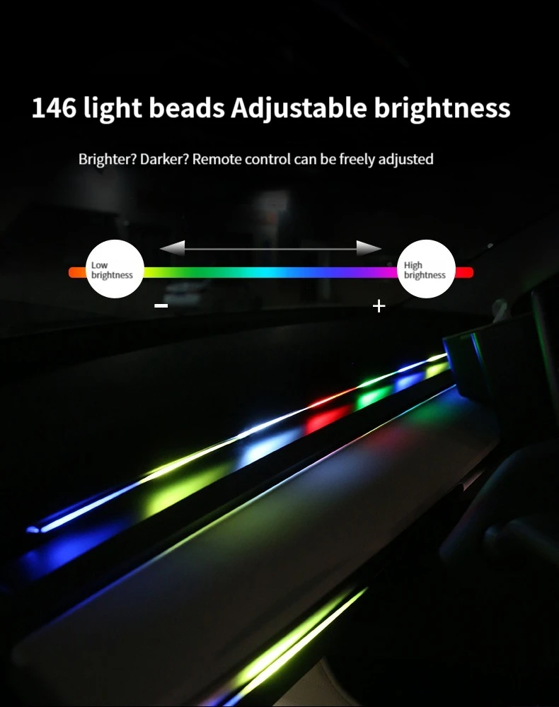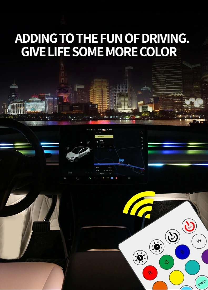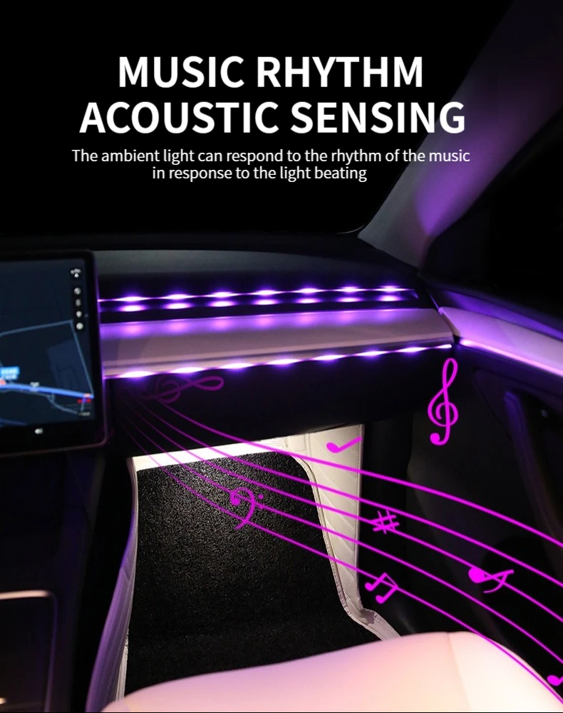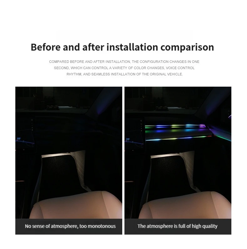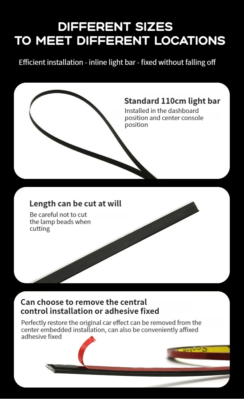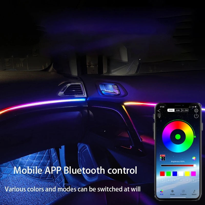 Car LED Ambient Light 64 Color Acrylic Strips 110cm Full Colors RGB Car Interior Hidden App Remote Control Atmosphere Lamp