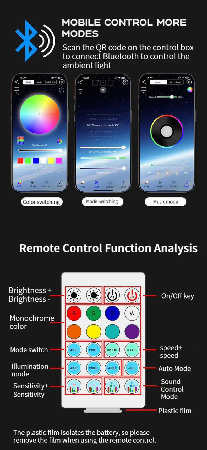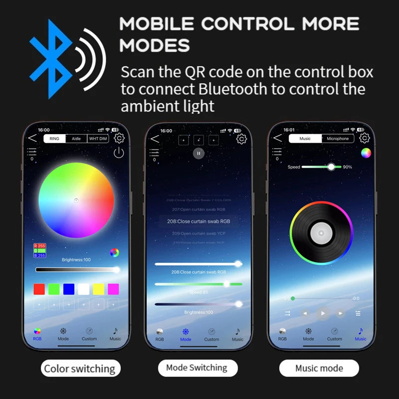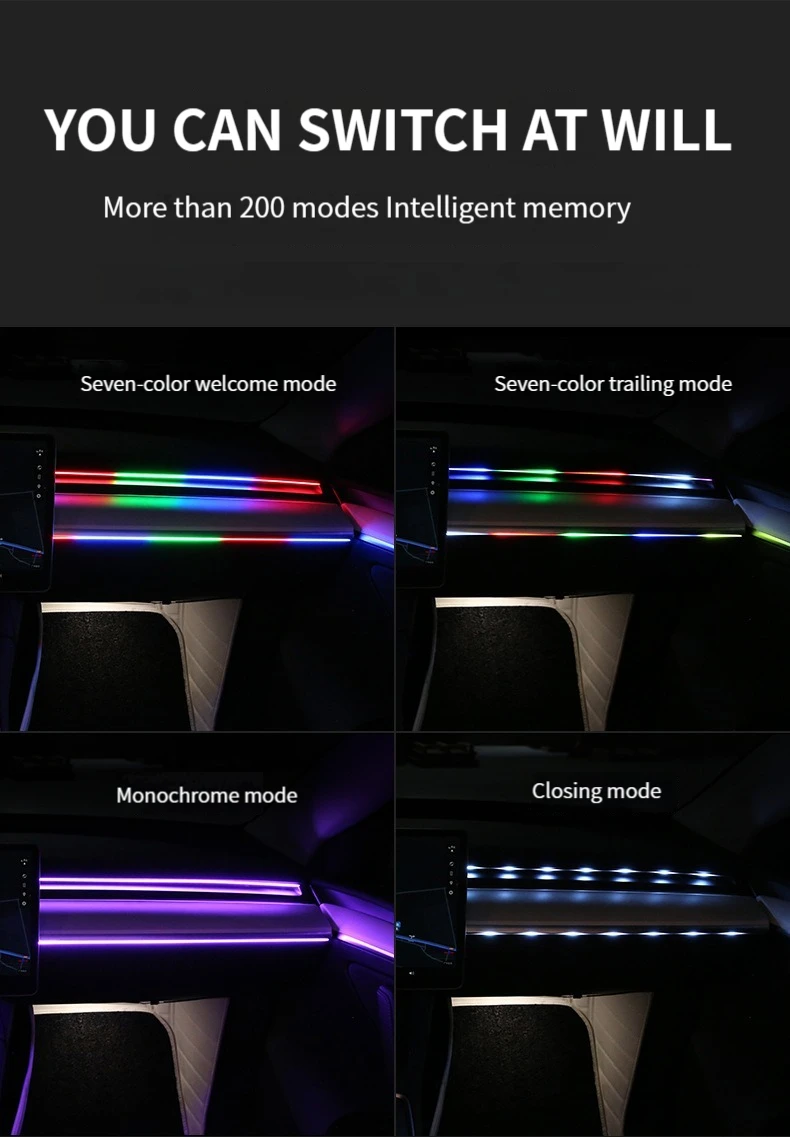 1) Sound Active Effects. The LED under car glow system is equipped with sound sensors that lets the LED lights synchronized with music beat. The LED music light strip follows the beat and adjusts flashing to fit the strength of the sound.