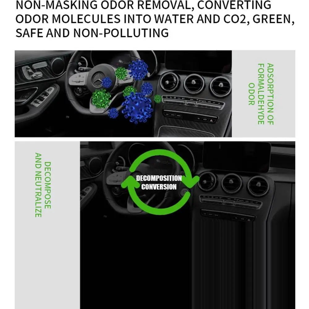3.Gentle Constituents: This car odor remover eliminates unpleasant smells and enhances the atmosphere in your car with a mild formula that is safe for all car interior materials and won't cause any damage or discoloration.