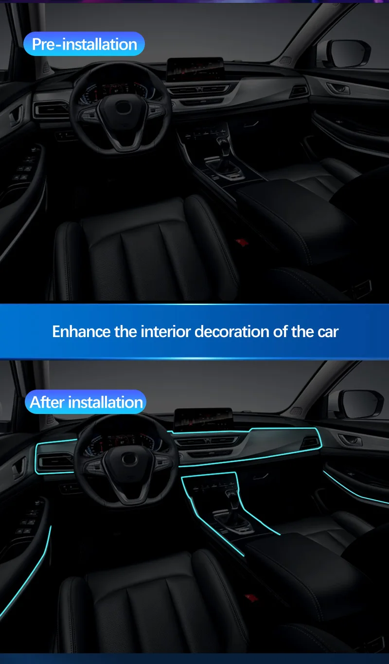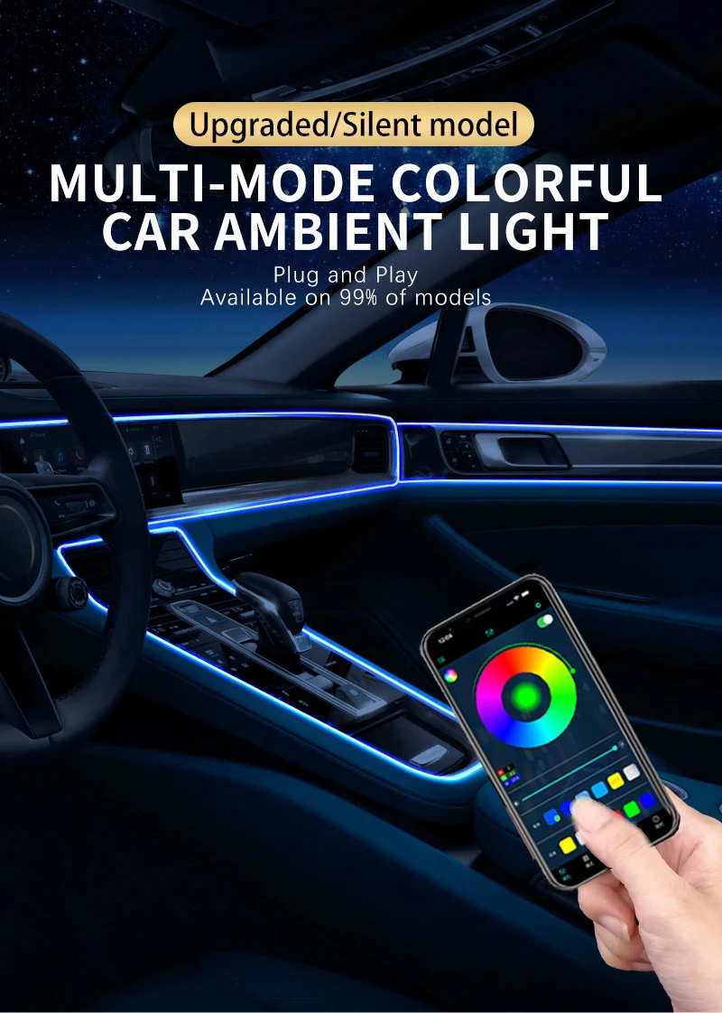Car RGB Ambient LED Light Strip USB Fiber Optic Atmosphere Neon Invisible Light Strip Center Console Door Decoration Lamp