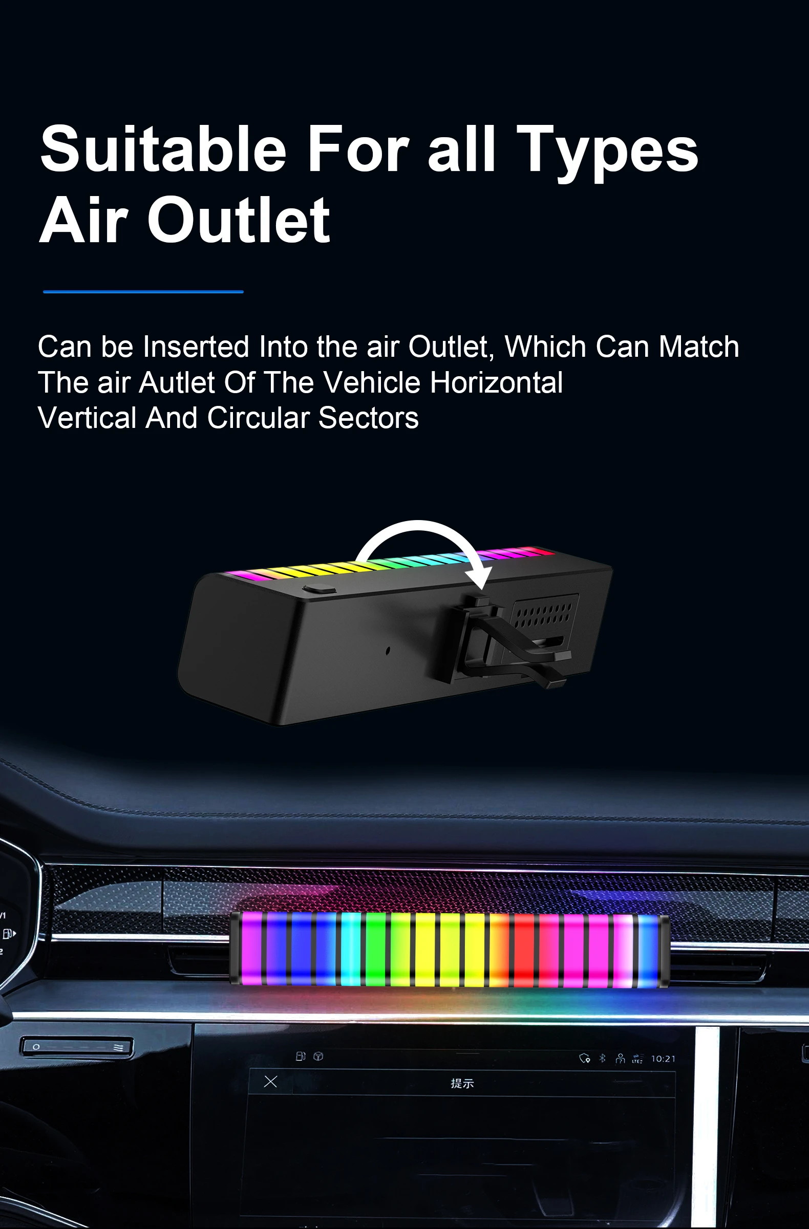 Car RGB LED Strip Light Music Sound Control Pickup Rhythm Ambient Lamp Atmosphere Light Bar Air Freshener Aromatherapy 2 In 1