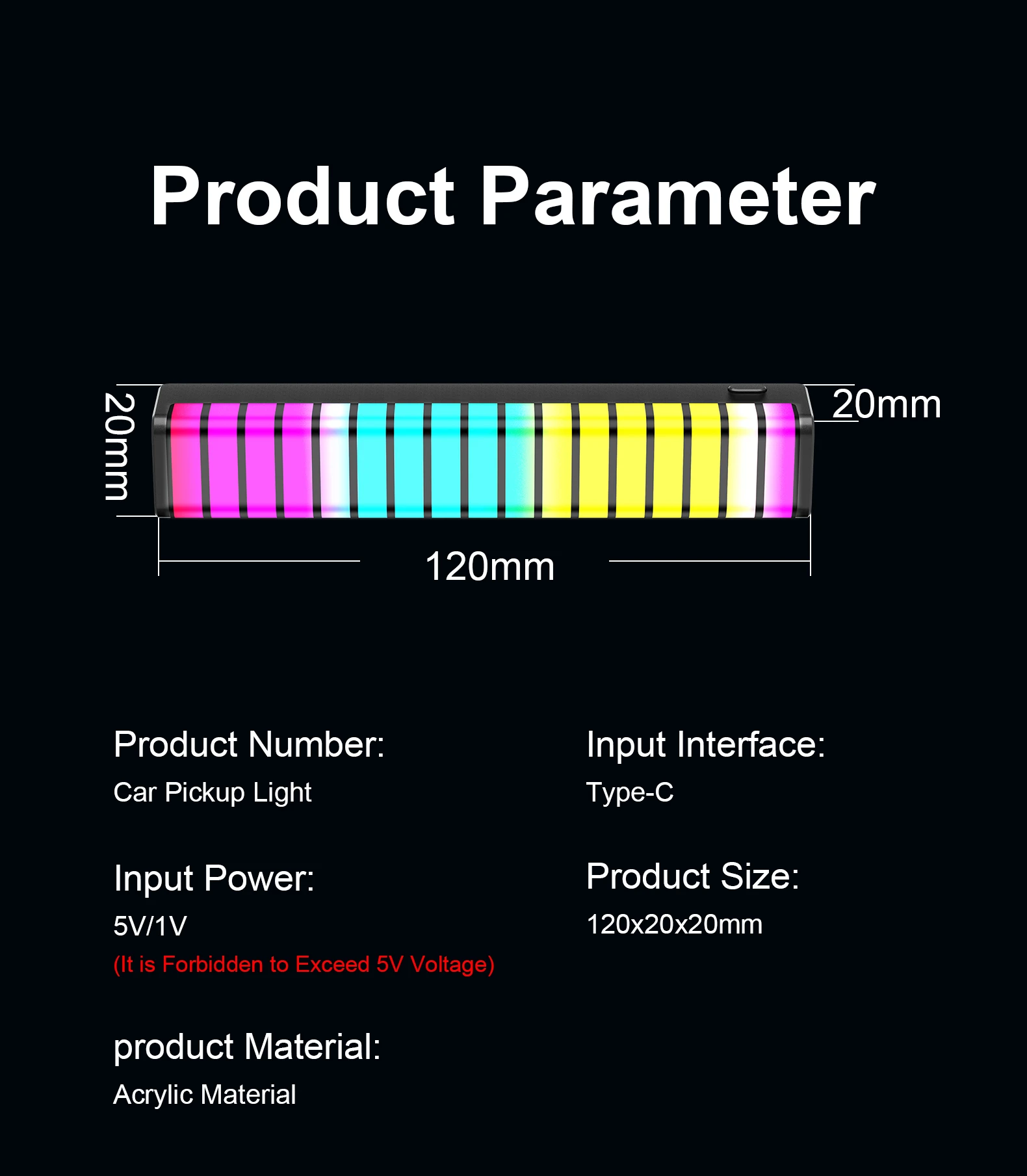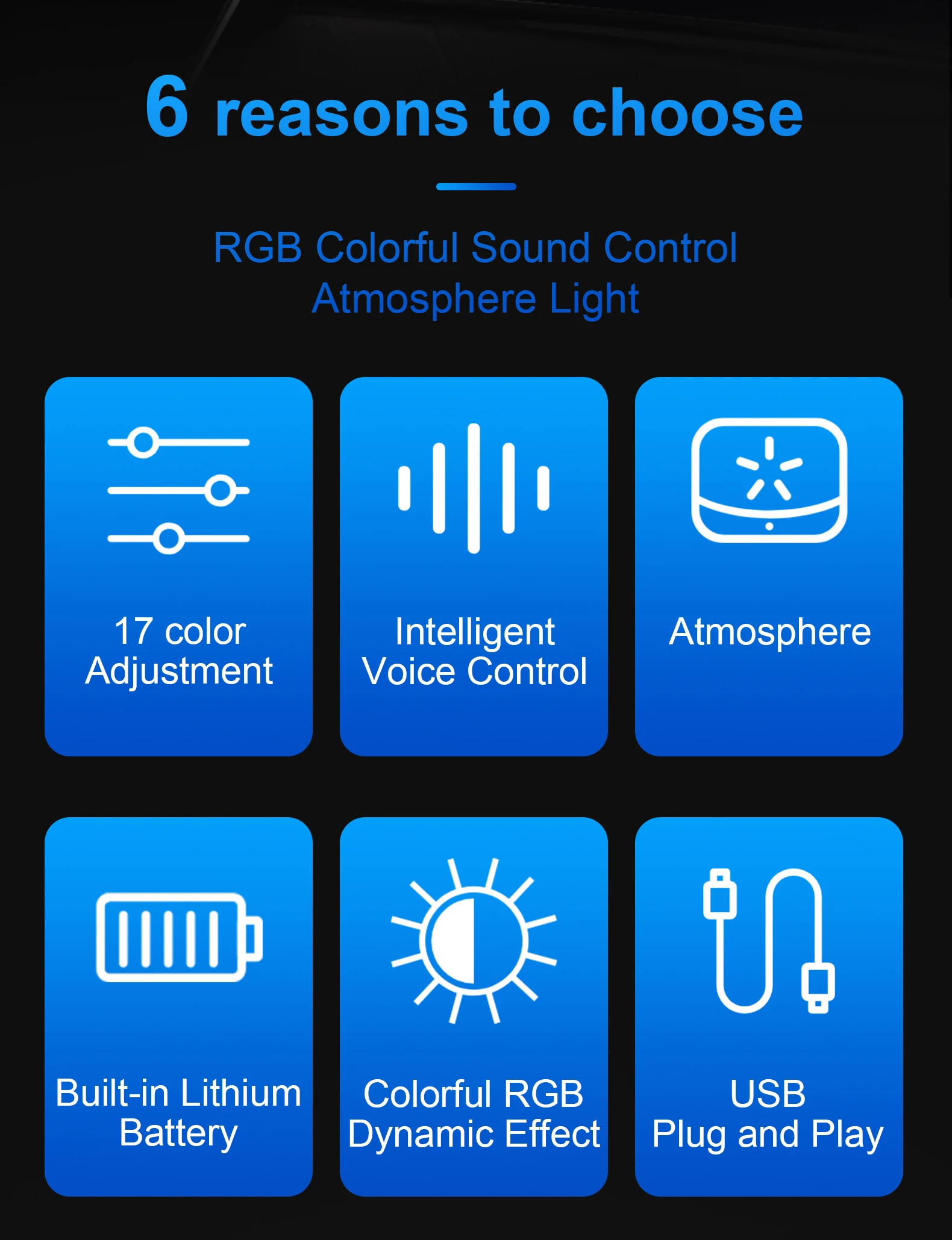 Special Features: RGB Atmosphere Pickup Rhythm Ambient Lamp
