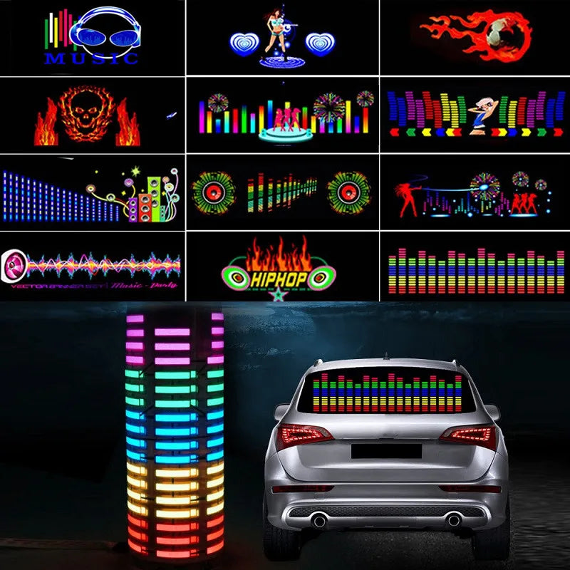 Car Sticker Music Rhythm LED Flash Light Lamp Car Rear Windshield Decorative Light Sound Activated Equalizer With Control Box