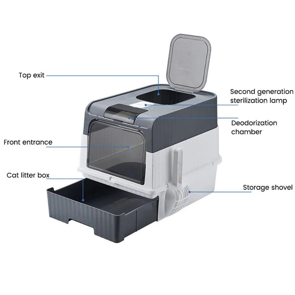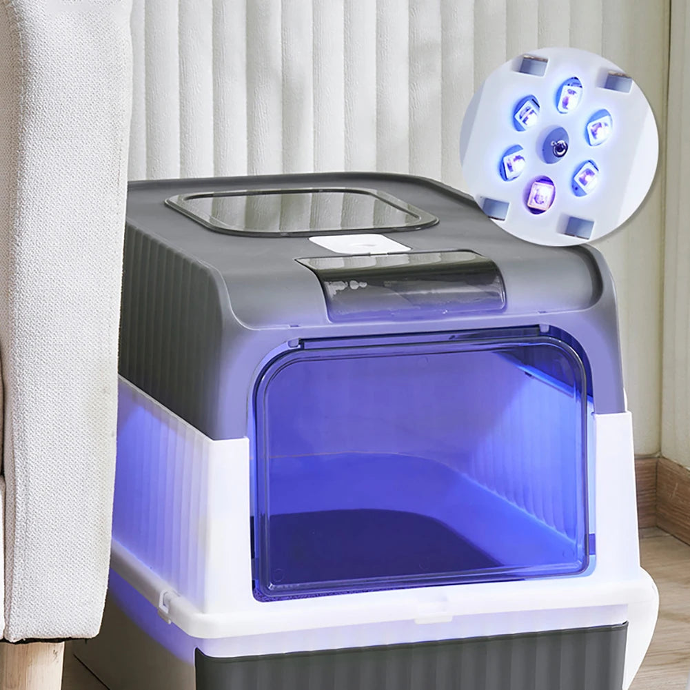 Cat Litter Box With UVC Ultraviolet Function Large Enclosed Top Entry Anti-Splashing Litter Box With Lid Convenient Auto-Off