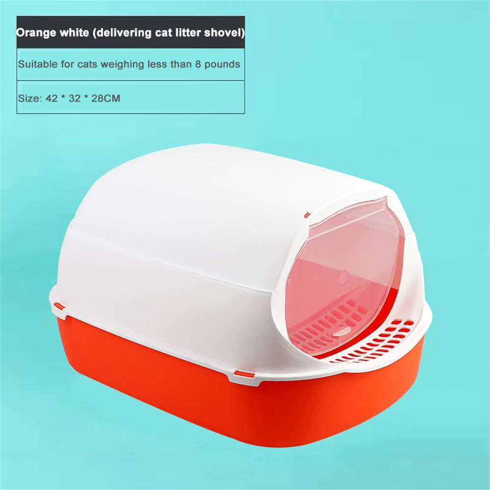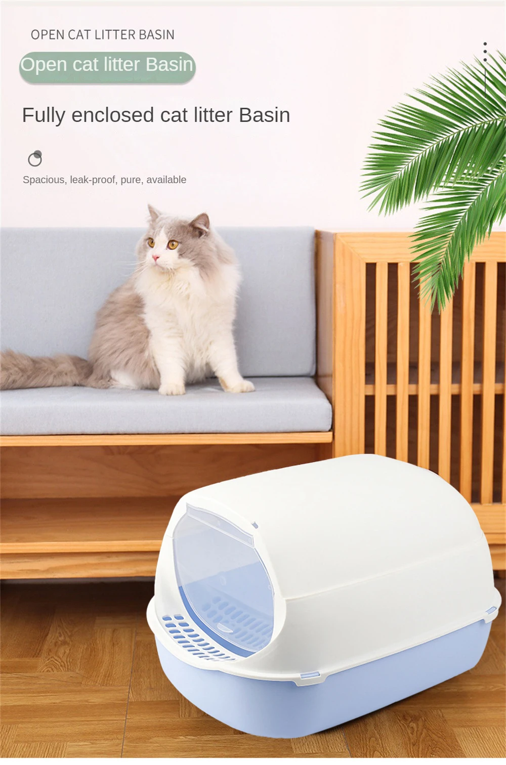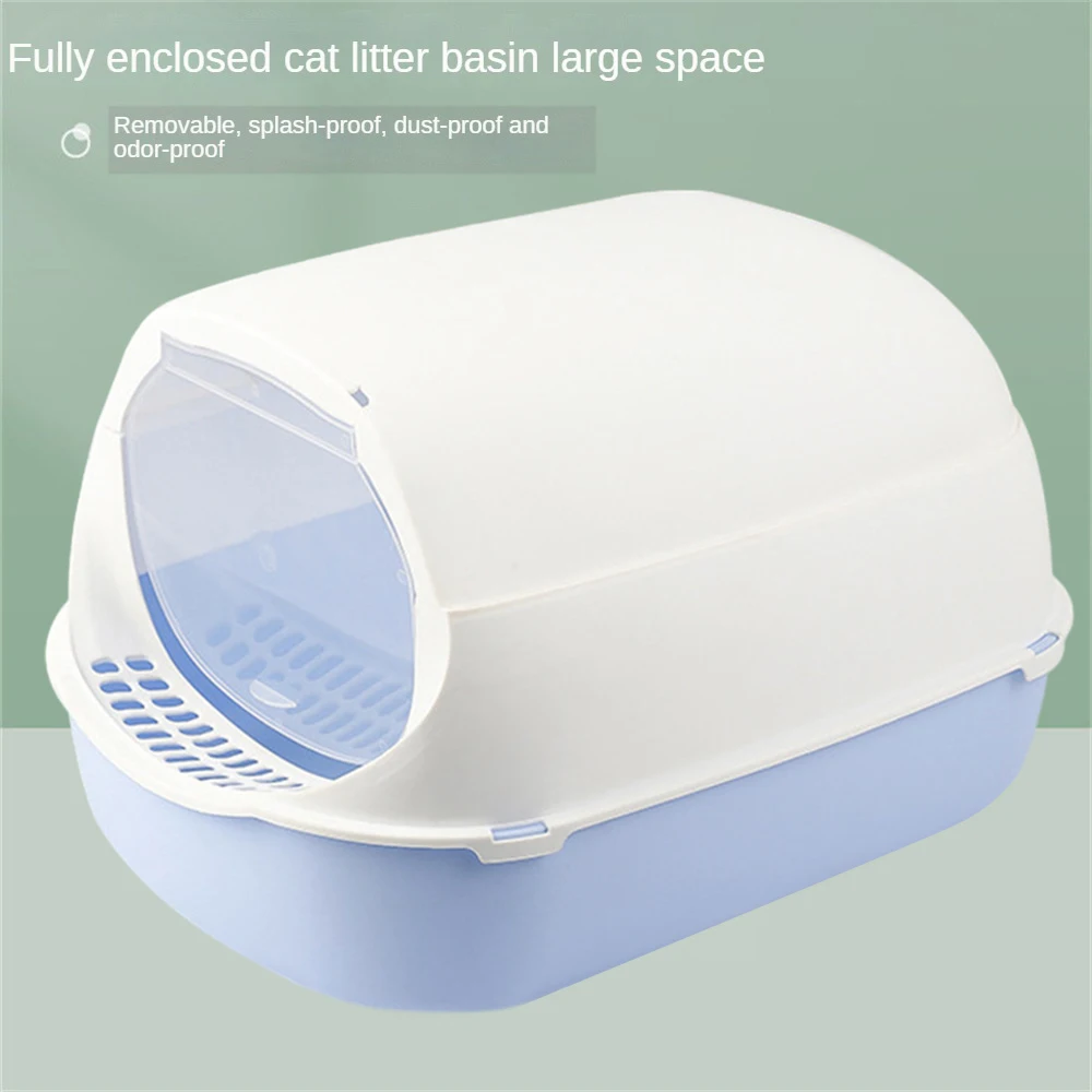 Cat Toilet With Spoon Closed Sandbox Fully Enclosed Pet Litter Box Pet Accessories Cat Excrement Basin Splash Proof Clean Basin