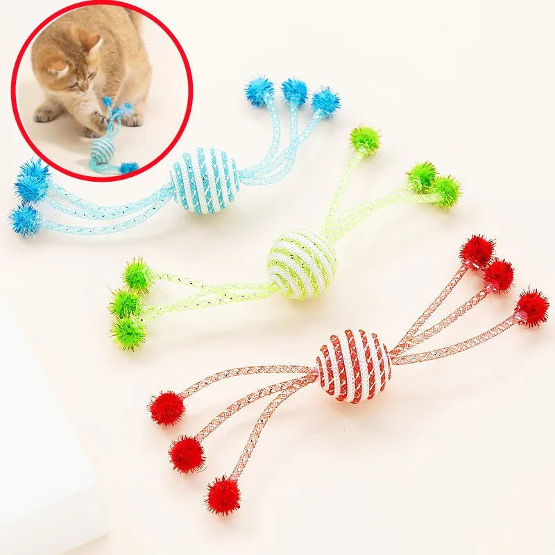 Cat Toy Self Hi Cats Sticks Cat Toys Interactive 2PC Ropes Ball Toys for Cats Teasing Bite-resistant Wool Ball 2PCS Pet Products