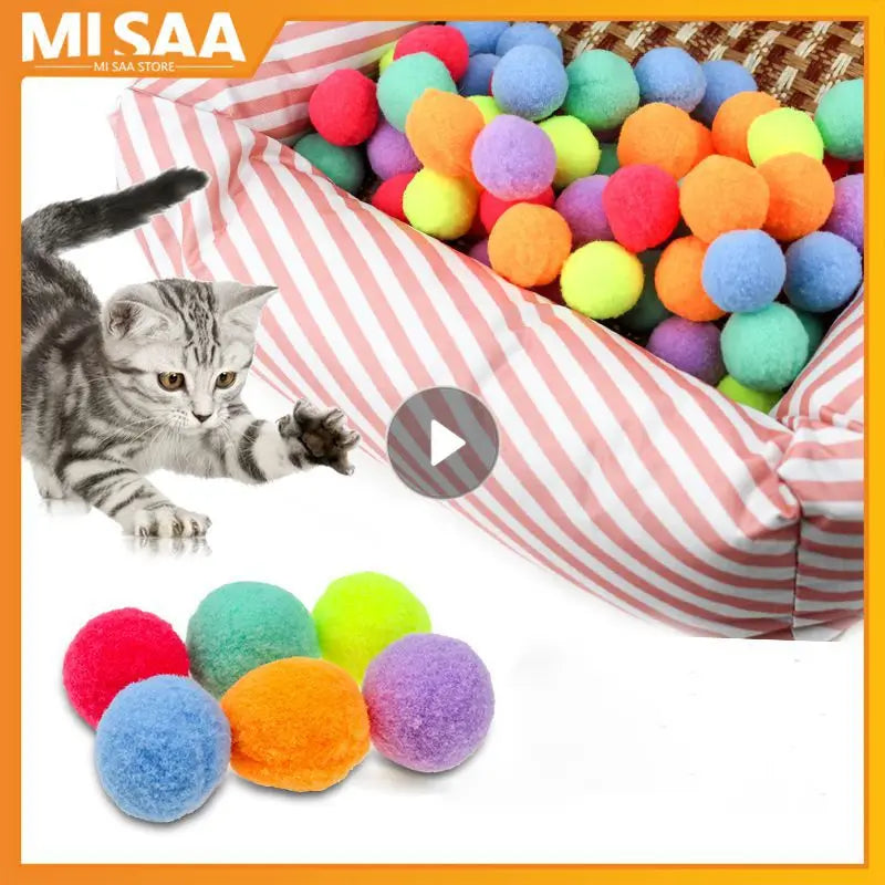 Cat Toy Stretch Plush Ball Interactive Launch Training Creative Colorful Kitten Mini Pom poms Games Cat Chew Toy Pet Accessories