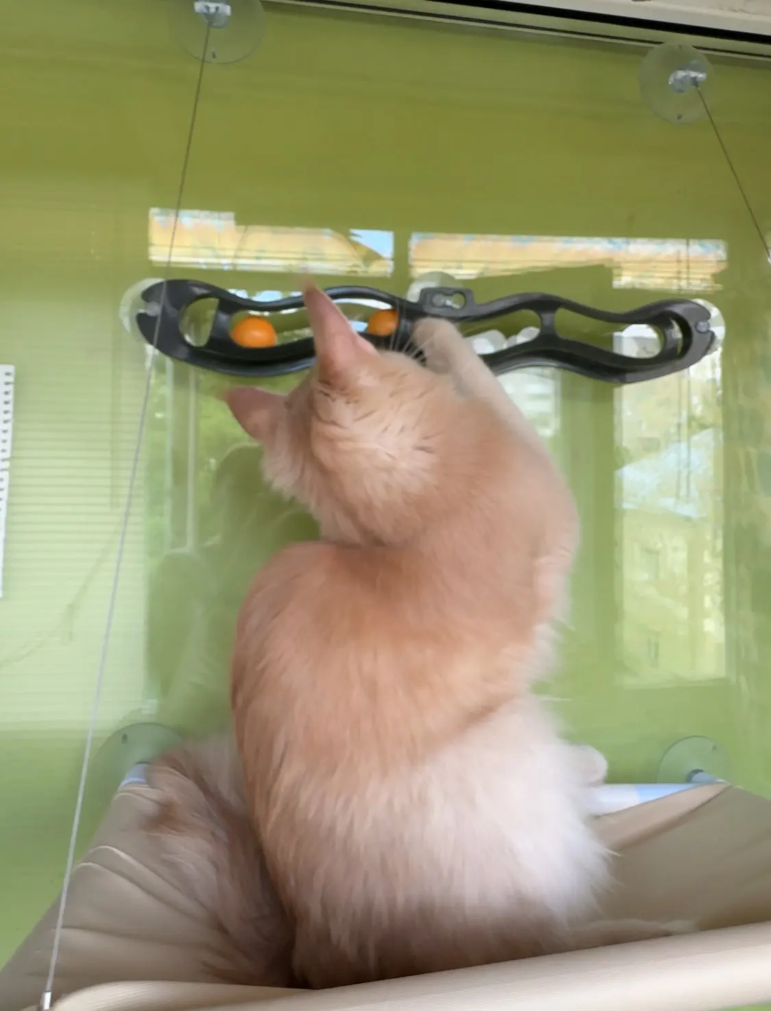 Through the eye-catching sports ball, the cat can slide over the large opening on the track.