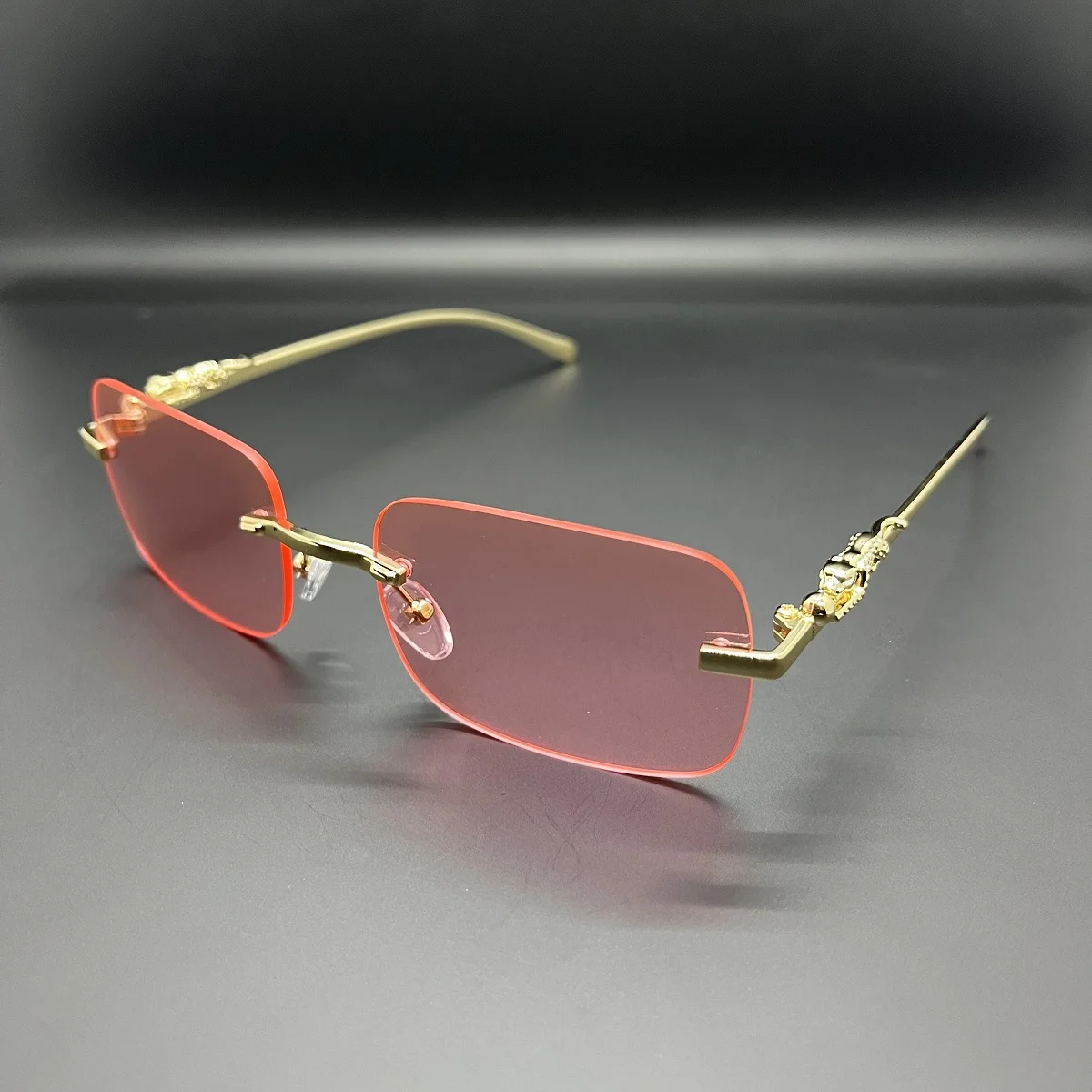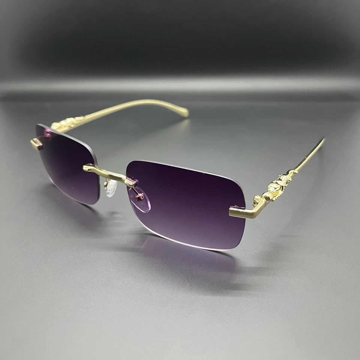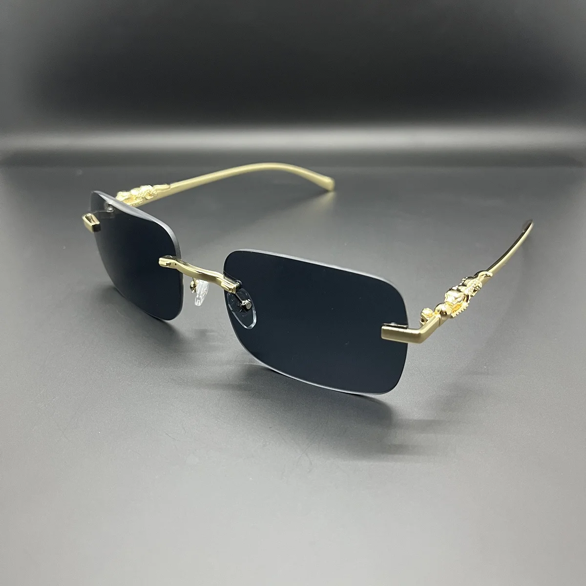 Classic Rimless Sunglasses Mens Women Fashion Leopard Decoration Small Sun Glasses Stylish Frameless Driving Travelling Shades