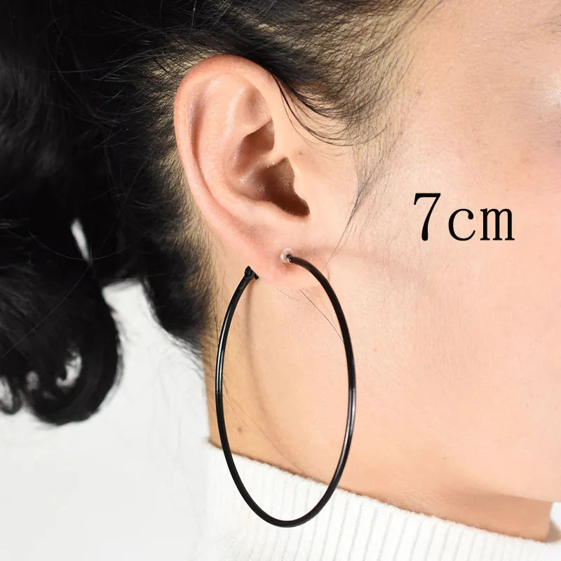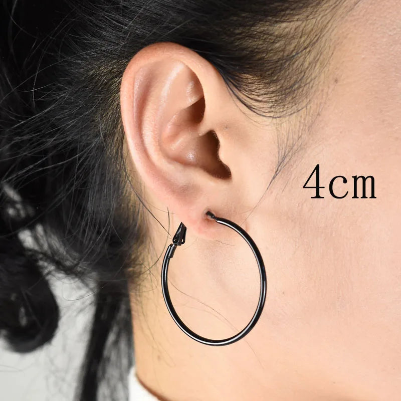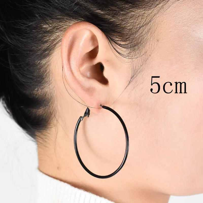 Clip on the ear without pierced Hoop earrings for women Big circle Black Round Personality punk 2021 Fashion Jewelry Accessories