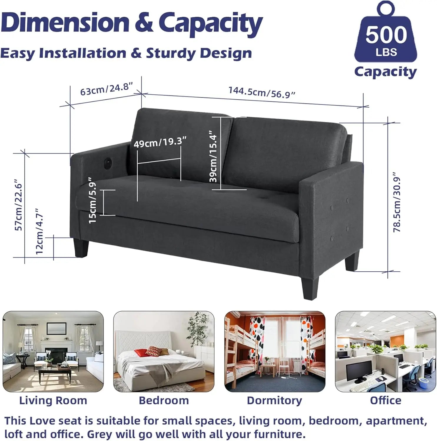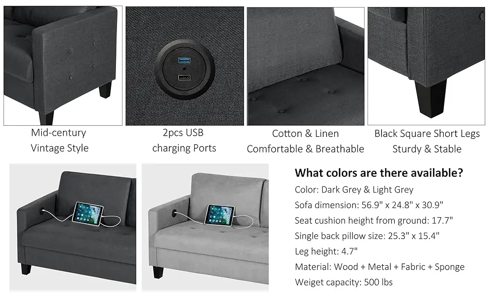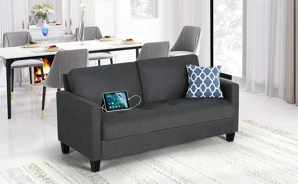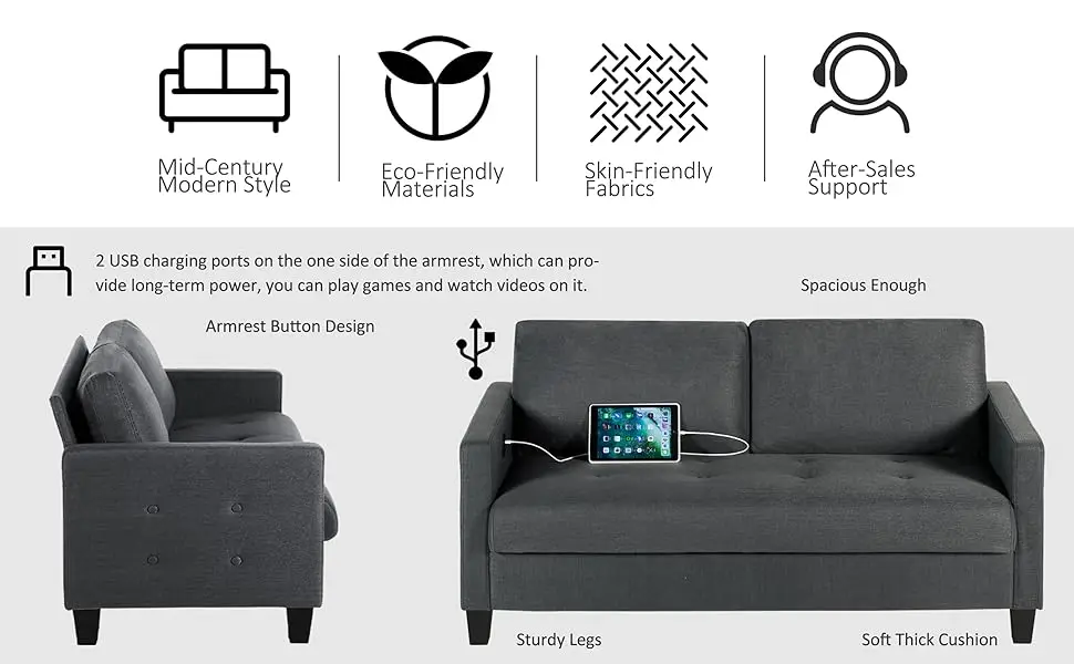 Comfy Sofa Small Grey Couch Small Spaces, Small Love Seat Bedroom, Mid Century Modern Couches Living Room Dorm