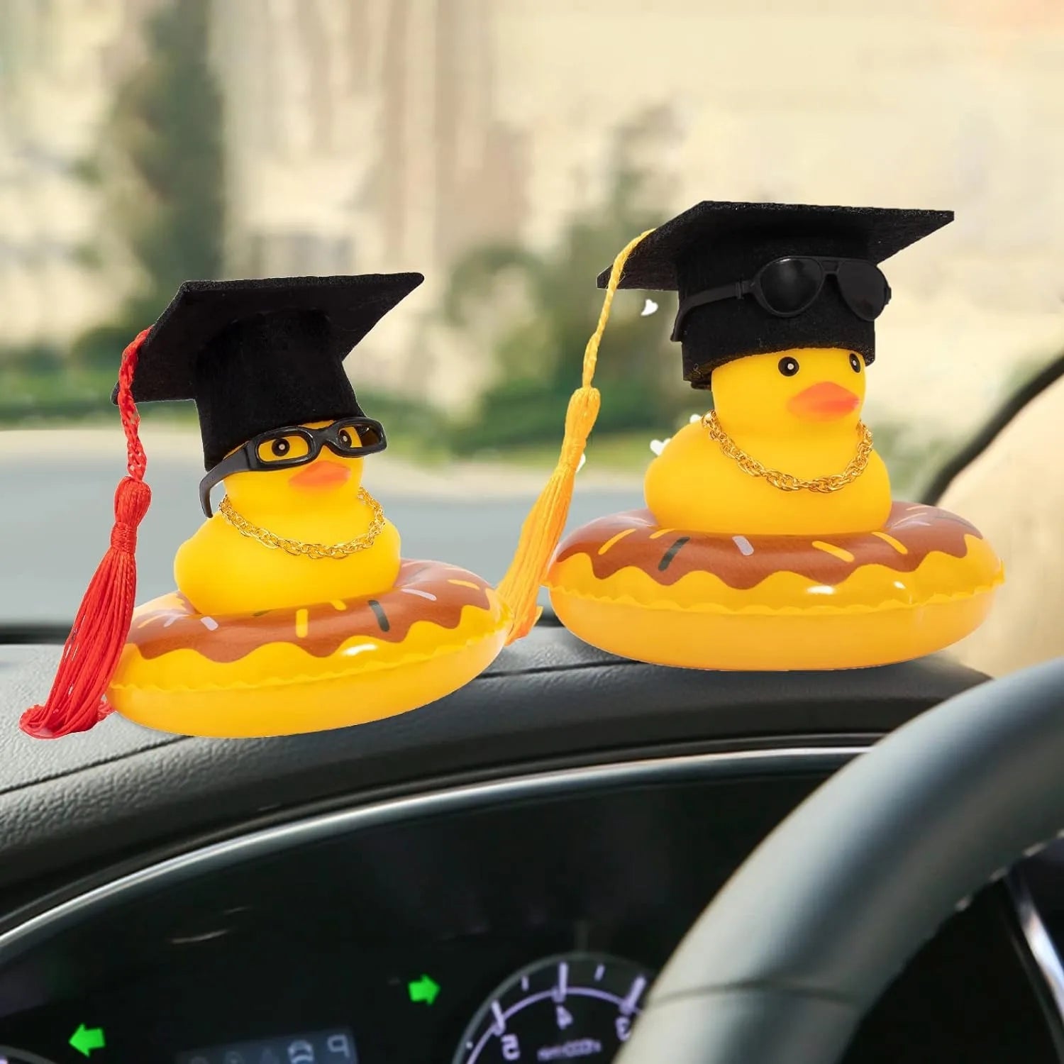 Cowboy Duck Car Dashboard Decorations Rubber Duck with Cool Accessories Mini Swim Ring Sun Hat Sunglasses Scarf or Necklace