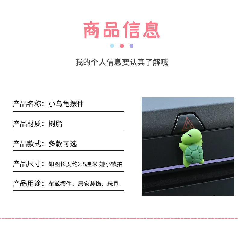 Cute Car Ornaments Car Center Console Display Screen Car Interior Decorations Little Turtle Cute Pendant Doll Girl