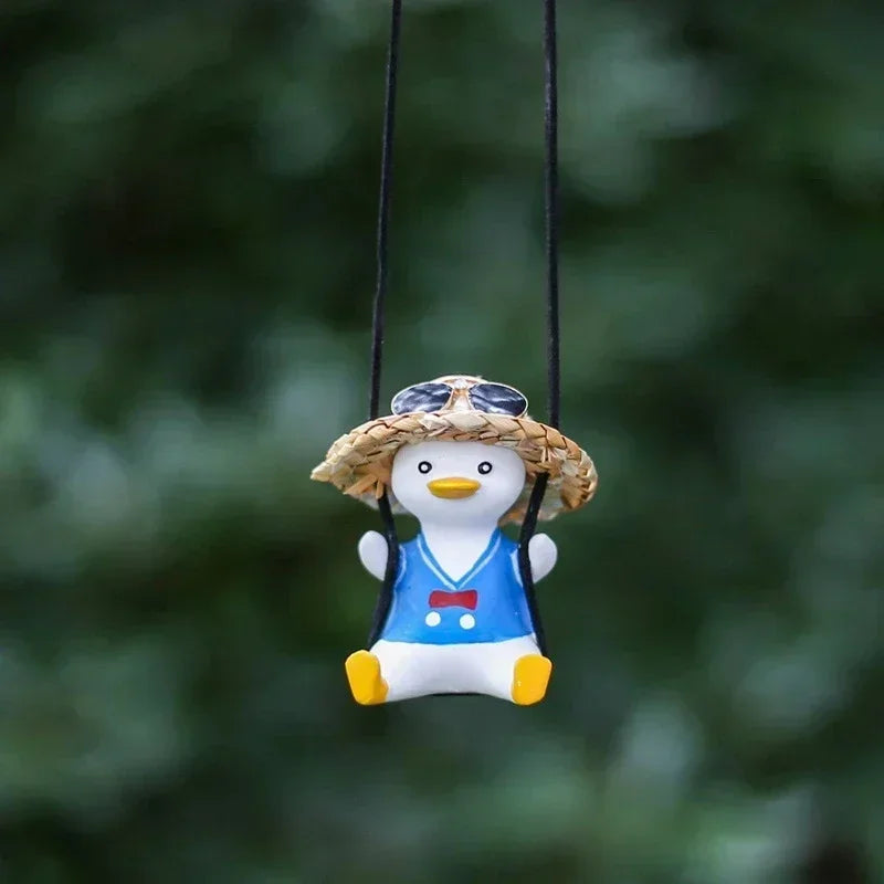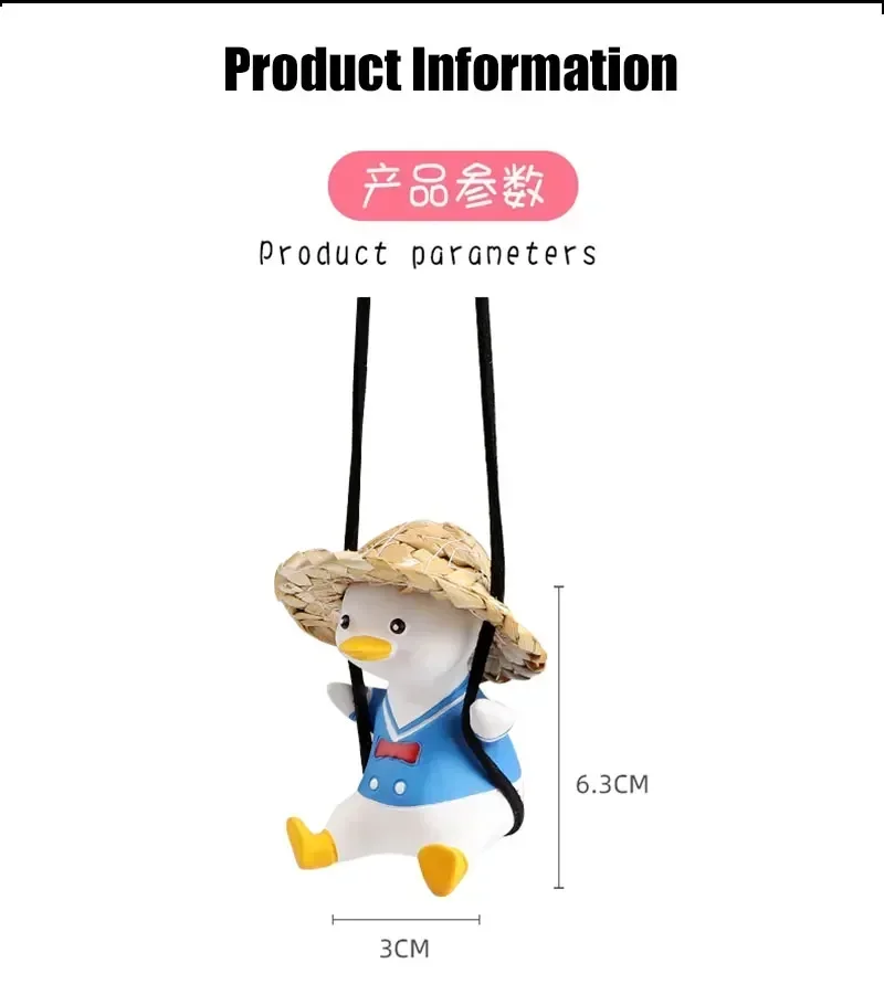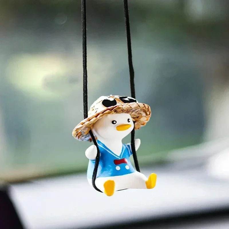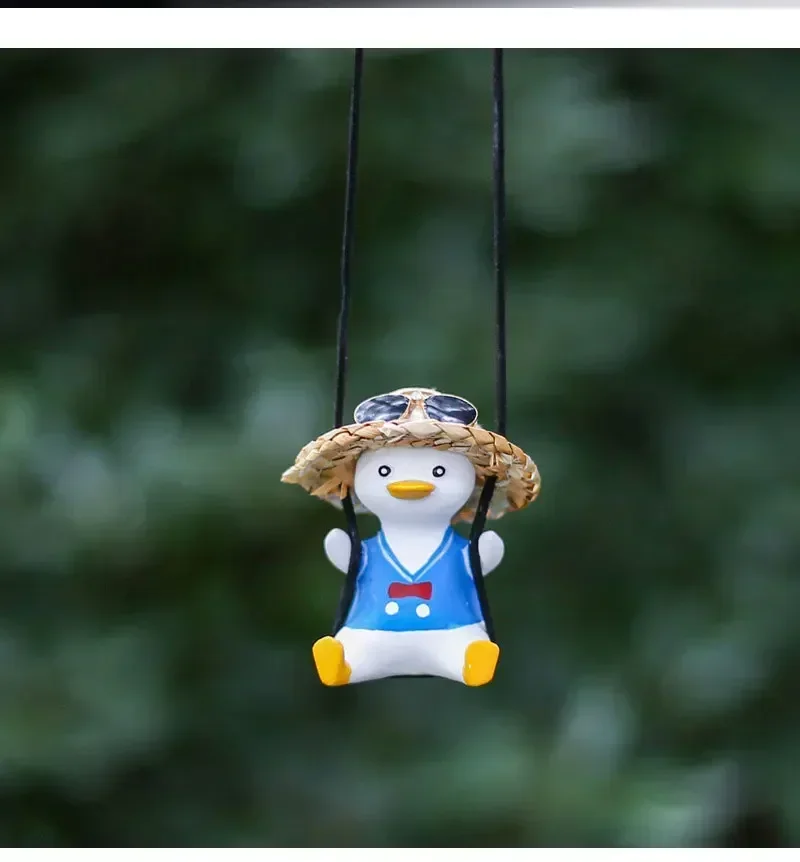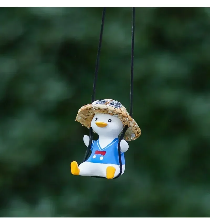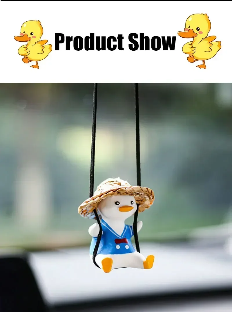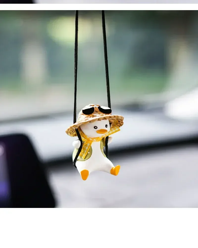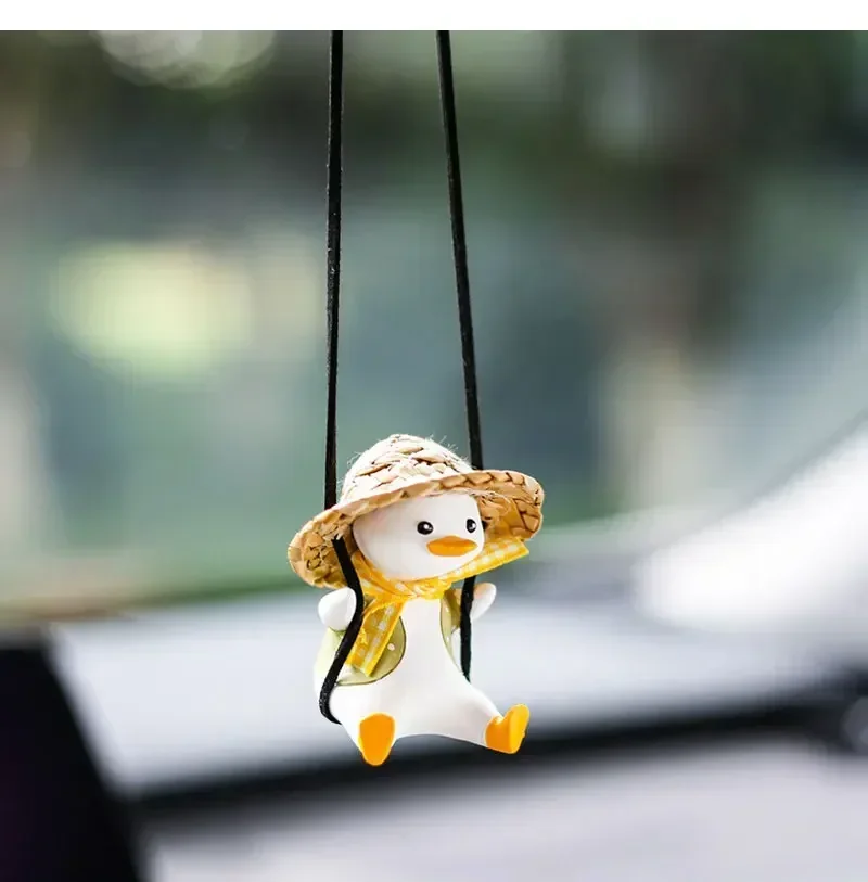 Cute Swing Sitting Duck Car Interior Pendant Auto Rearview Mirror Hanging Ornaments Decoration For Women Man Car Accessories