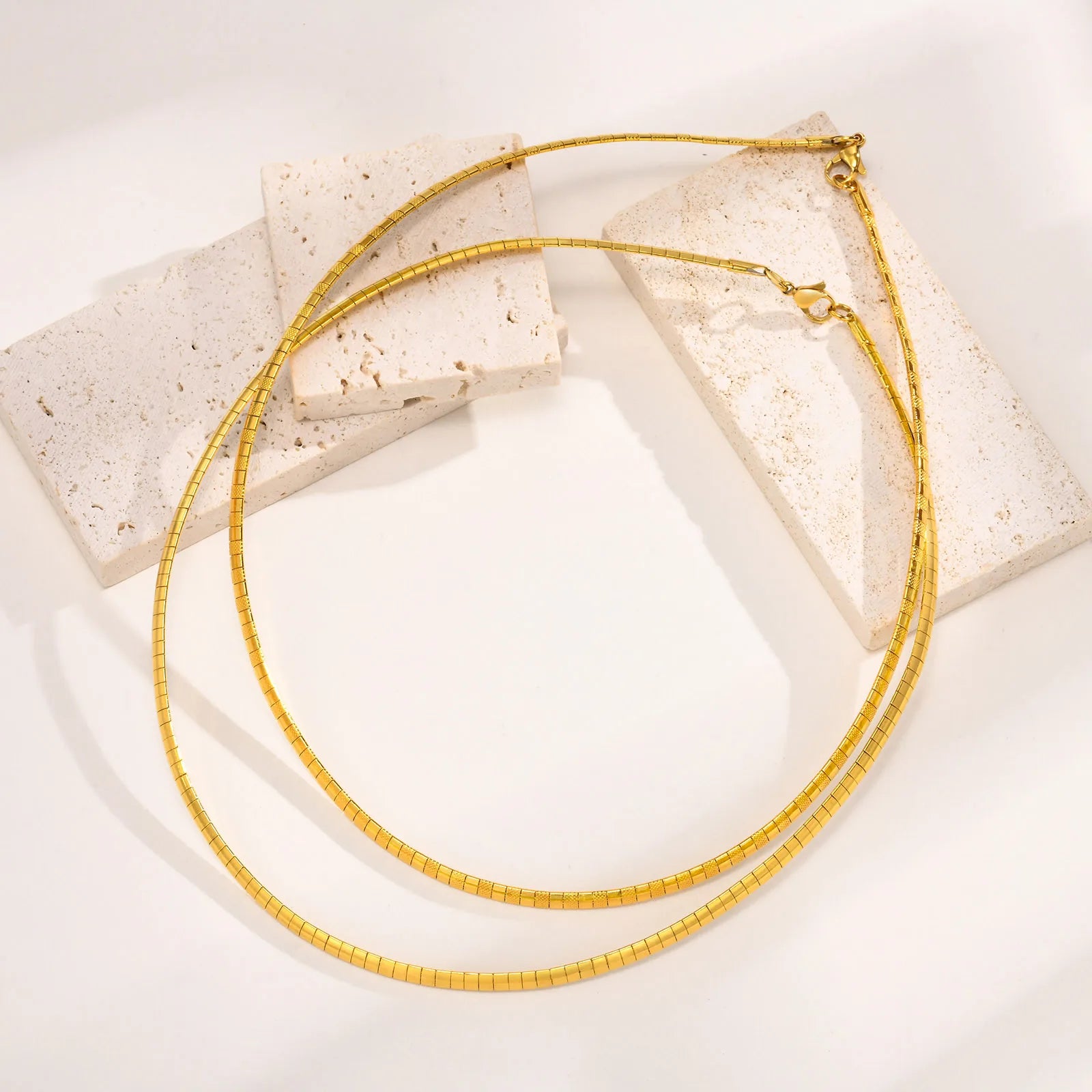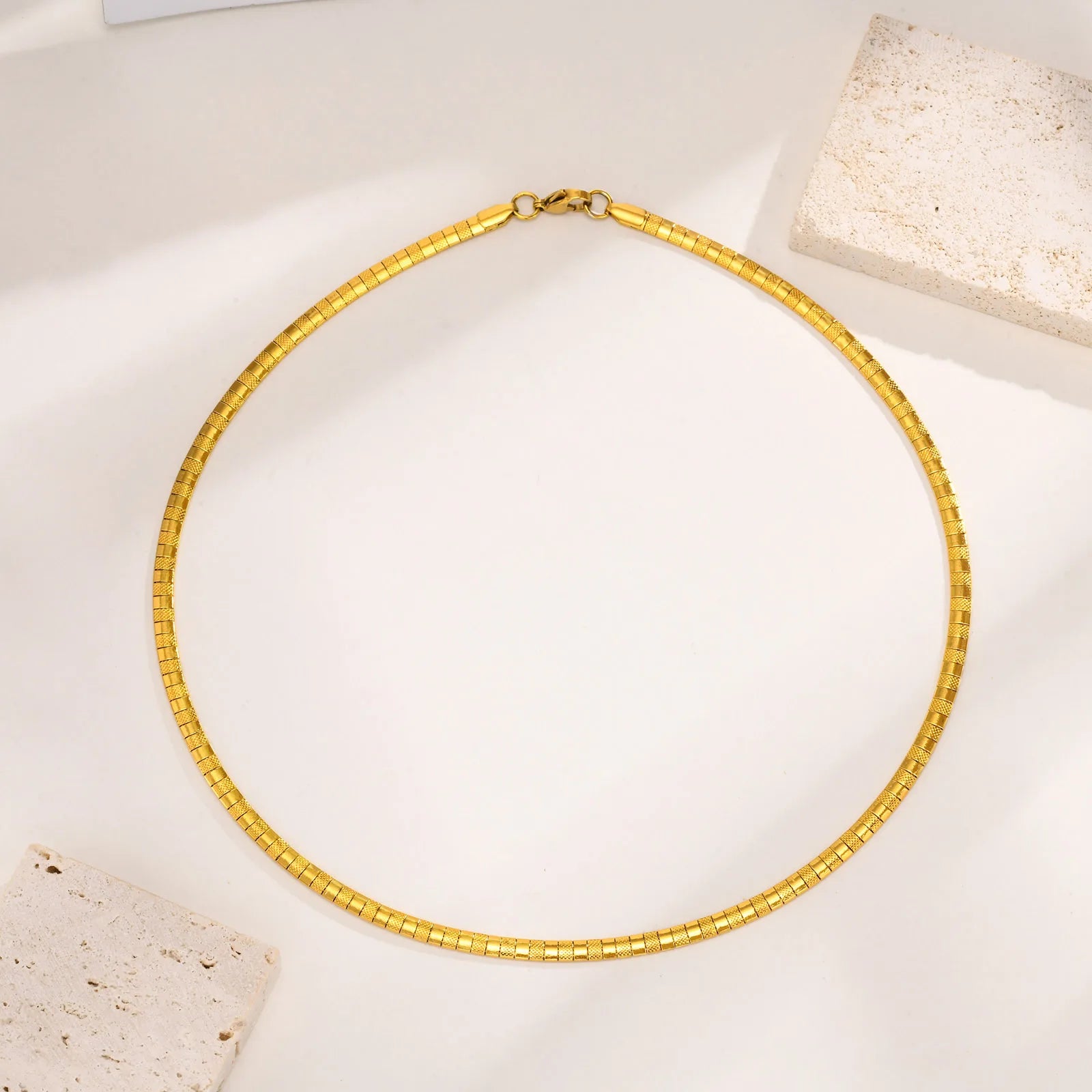 Dainty Flat Snake Chain Necklaces for Women Girls, Gold Color Stainless Steel Square Charms Choker Necklace Collar Jewelry Gifts