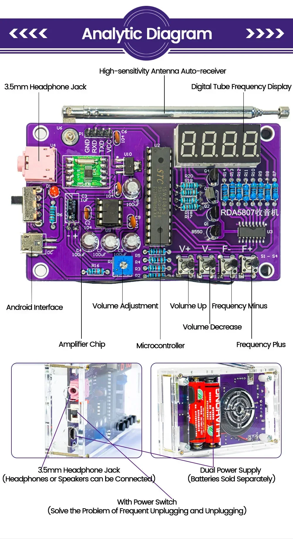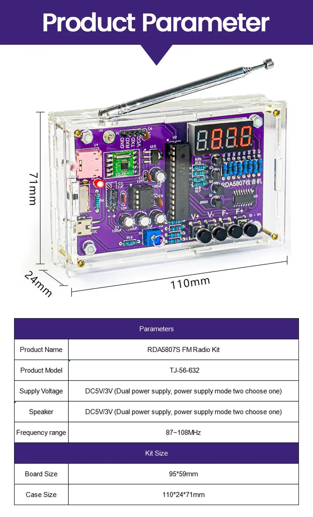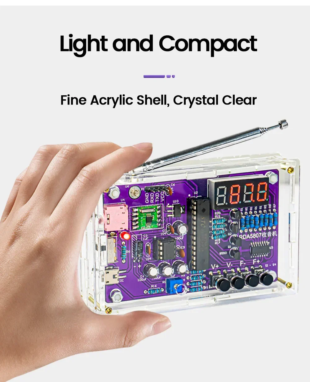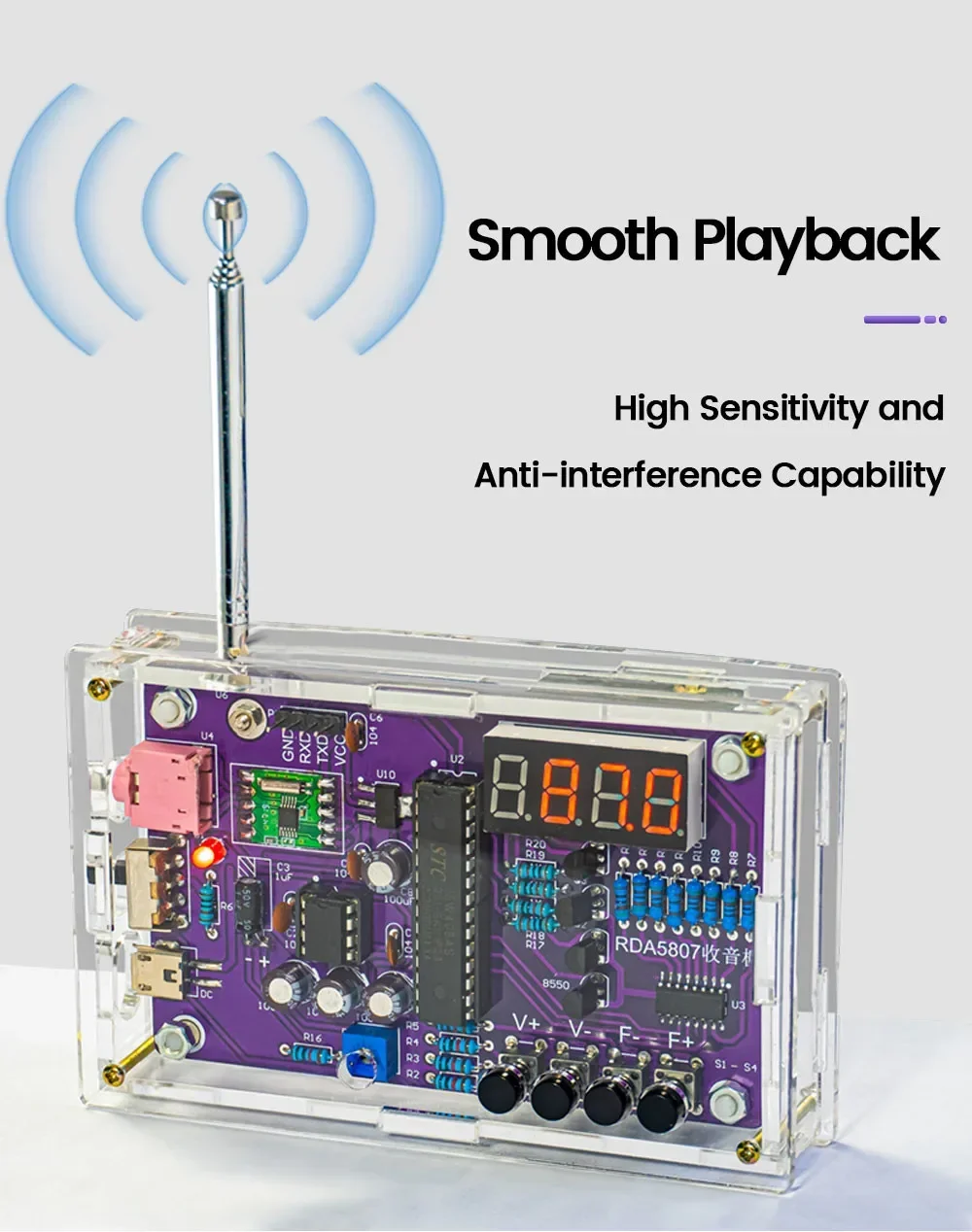 DIY FM Radio Electronic Kit Adjustable Frequency 87-108MHz Digital Display DIY Soldering Project Practice Solder RDA5807S
