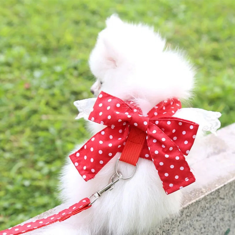 Dog Bowknot Harness Set Harness Leash Set For Small Medium Puppy Dogs Chihuahua Lace Print Mesh Wedding Party Dog Harness Vest