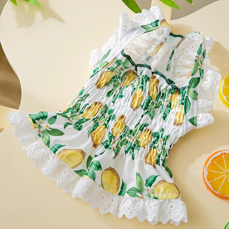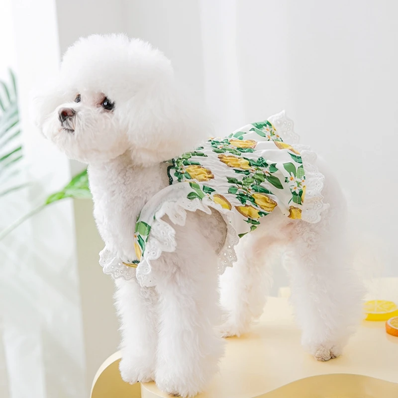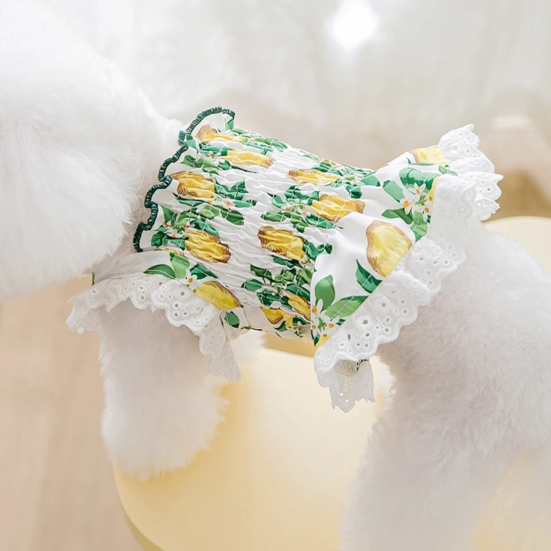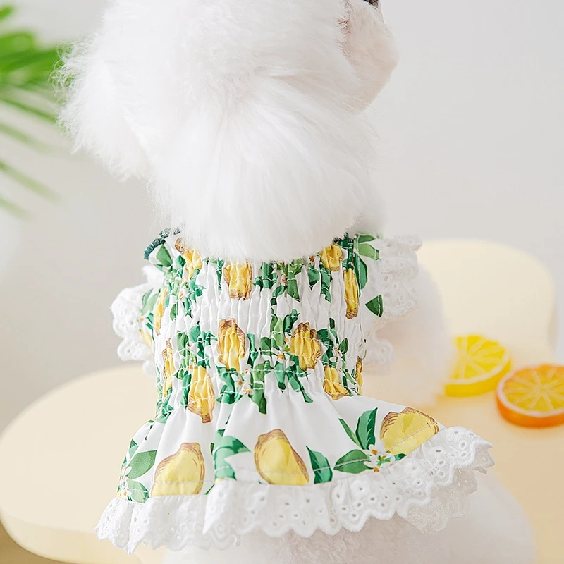 Dog Clothes Summer Cute Puppy Dress Pet Fruit Print Skirt Chihuahua Bichon Yorkie Clothing Kitten Dog Costumes Lace Dog Vest