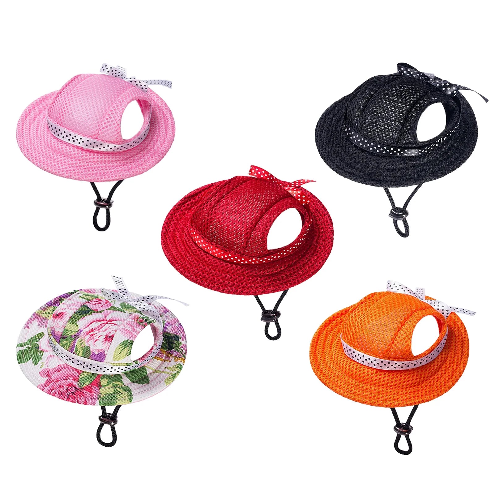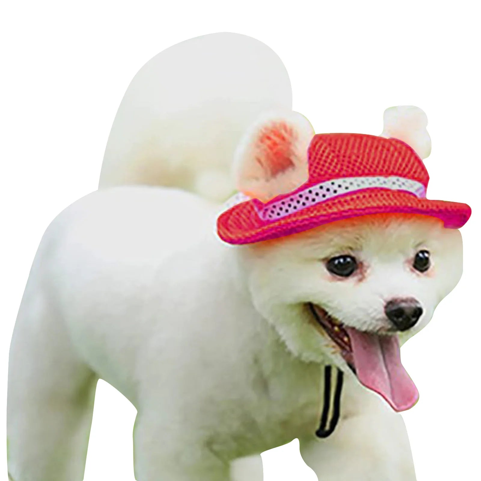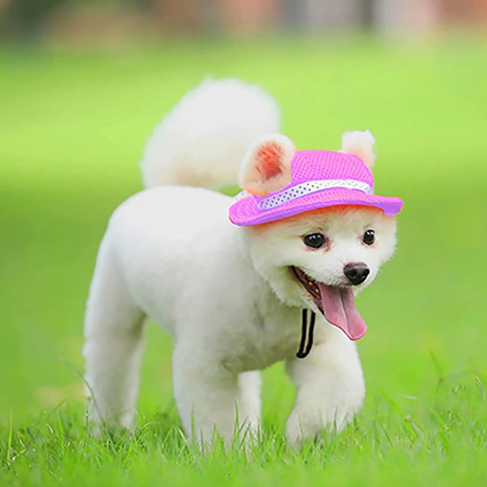 Dog Hat Pet Hats Round DogHat Outdoor Breathable Sun Protection Cap Mesh Sun Cap With Adjustable Chin Strap For Dogs Cats