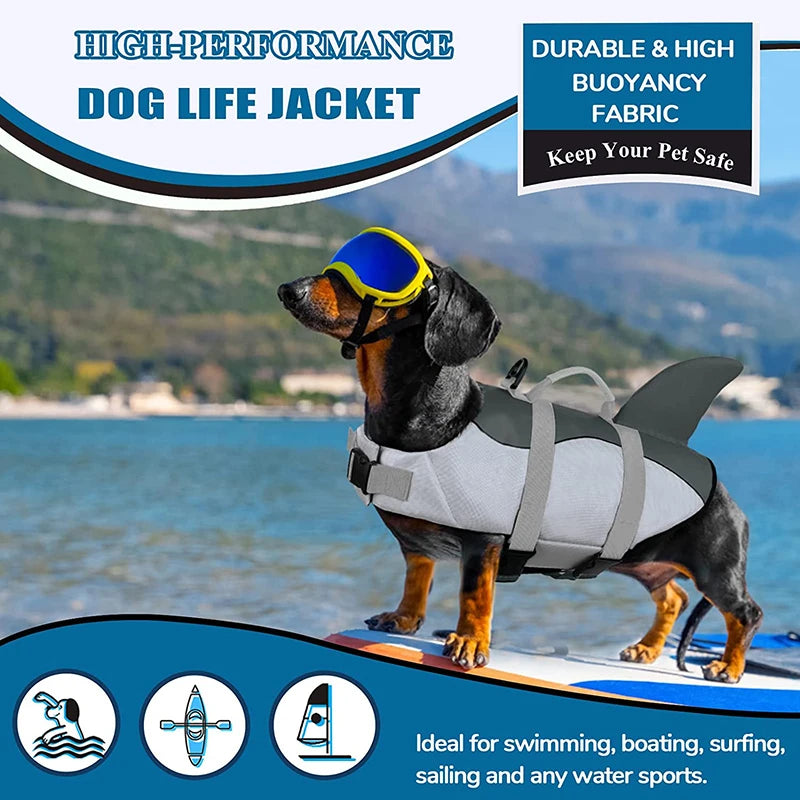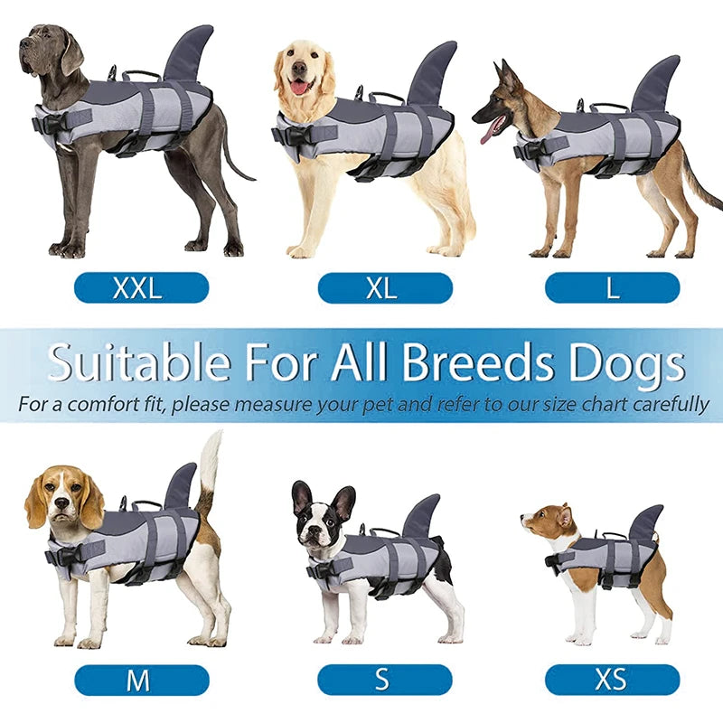 Stylish and Eye-Catching Design This pet flotation jacket comes in trendy colors that mimic the shape of a shark and grab attention, making your dog the focal point of a pool beach or boating with you.
