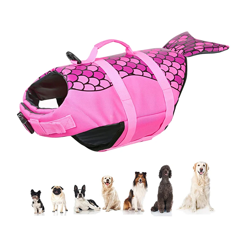 Perfect Practical Design: The flotation life jacket is designed with adjustable shoulder straps and a quick release buckle, which fits your dog comfortably and is easy to put on and take off. The handle is at the top for a quick and easy grip. Heavy-duty D-ring hooks are perfect for dog leashes. Reflective stripes and vibrant colors enhance maximum visibility.