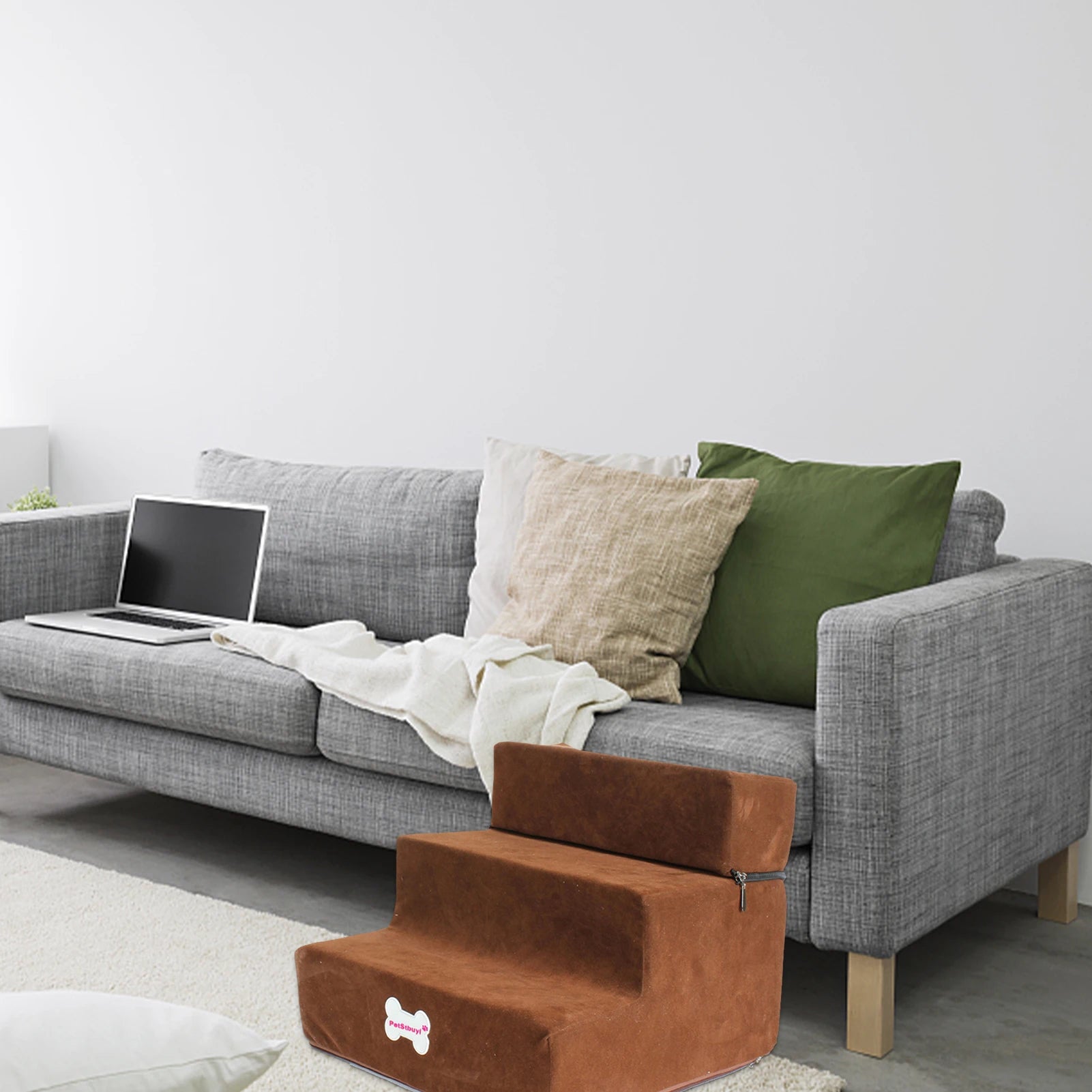 The Dog Steps for High Bed are made of a high-density sponge, high resilience, comfortable and soft to the touch, and not easy to deform. It adopts a detachable design, which can be disassembled into 1 or 2 stairs for use.