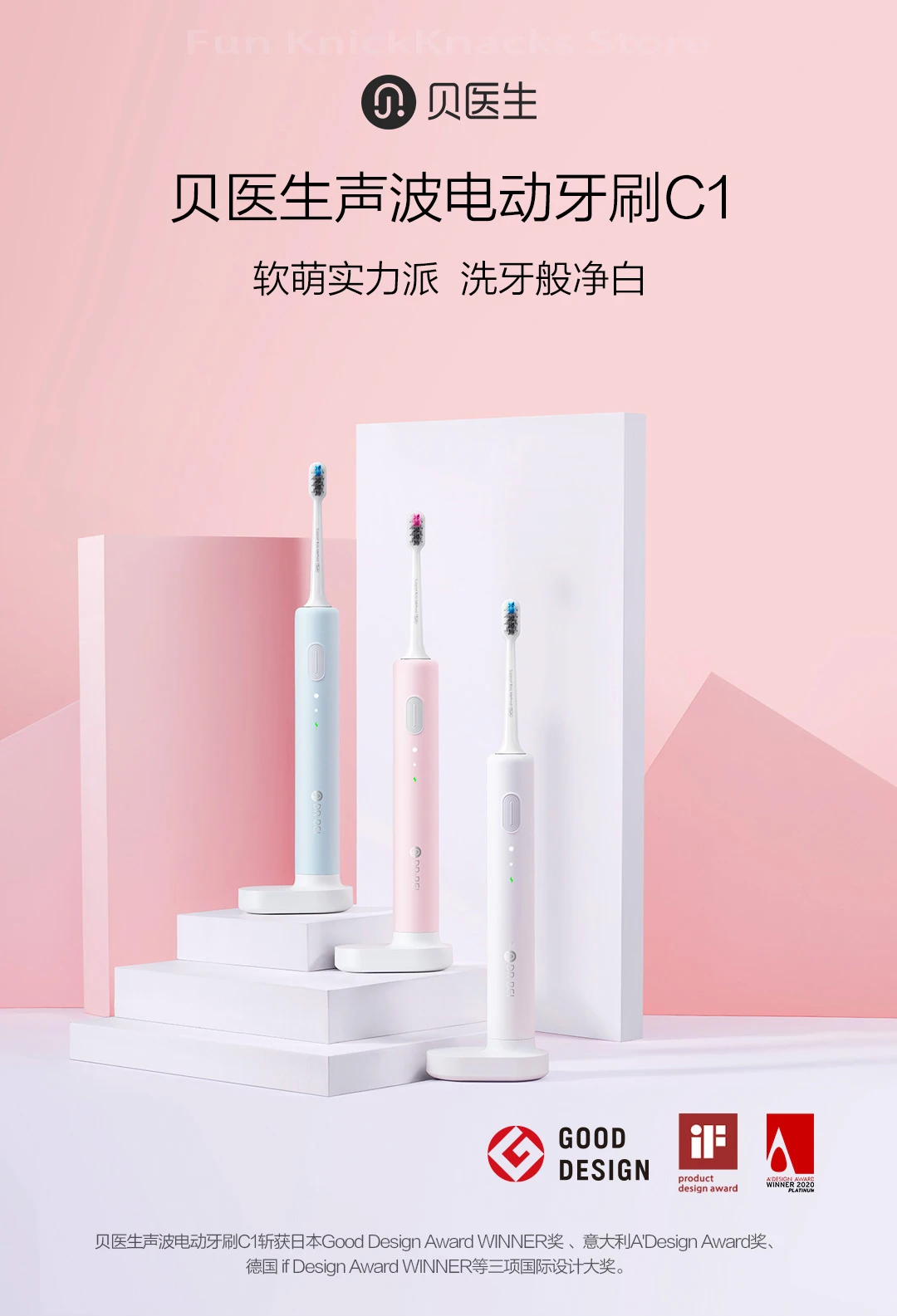 Dr.BEI Sonic Electric Toothbrush C1 IPX7 Level Waterproof Wireless Induction Charging 20 Days Standby with 2pcs Toothbrush Head