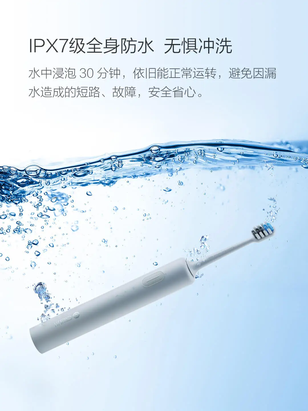 The double-effect brush head meets different needs. 1 Clean powerful cleaning, DuPont imported bristles, suitable for people with more tooth stains and tartar. 2 Sensitive Gum cares for the gums, Japanese Toray imported soft hair, suitable for people who are prone to bleeding when brushing their teeth.