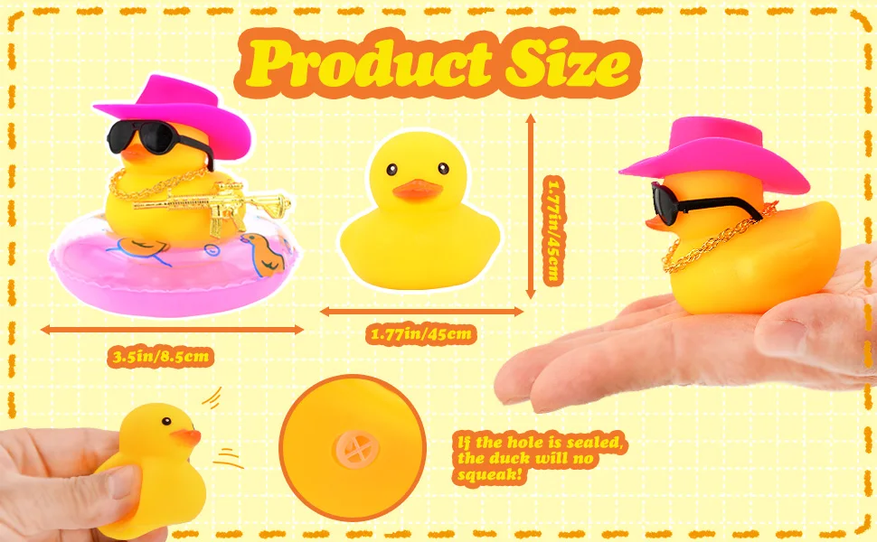3. Squeak & Fun: The dashboard ducks can make a squeaking sound when you squeeze them, which can be as a lovely car decoration to add some fun and release your stress during driving.