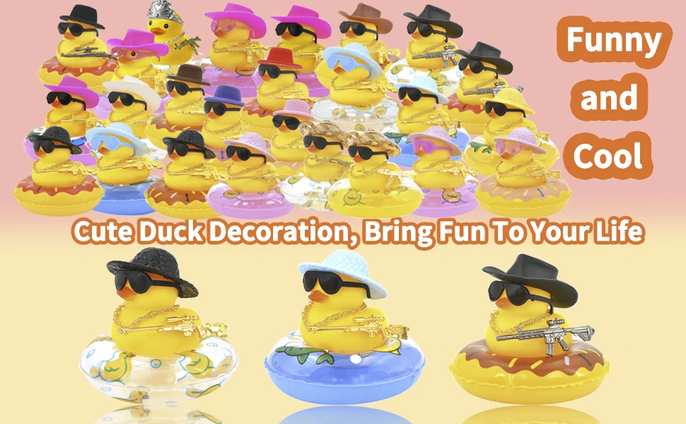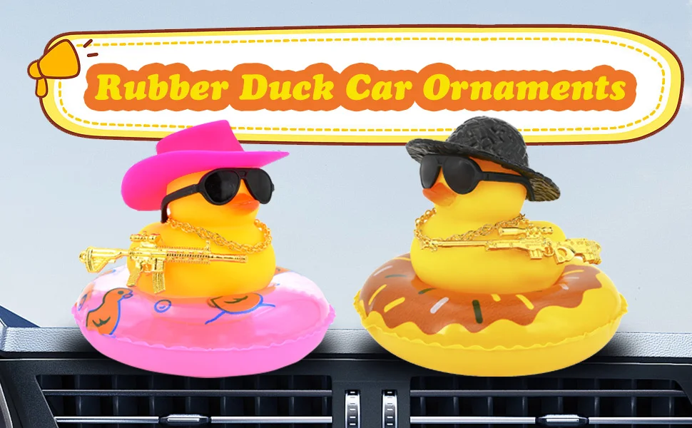 1. Funny Duck: This car duck is equipped with a mini crown, swim ring, necklace and double-sided tape, which is a special and unique duck to decorate our car and other places.