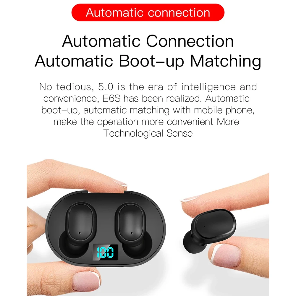 E6S TWS Wireless Earbuds Noise Canceling Waterproof Ear Buds In-Ear Stereo Headphones With LED Display Charging Case