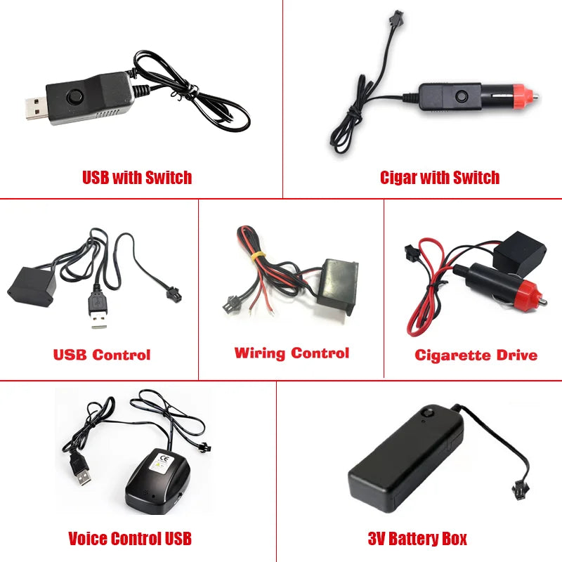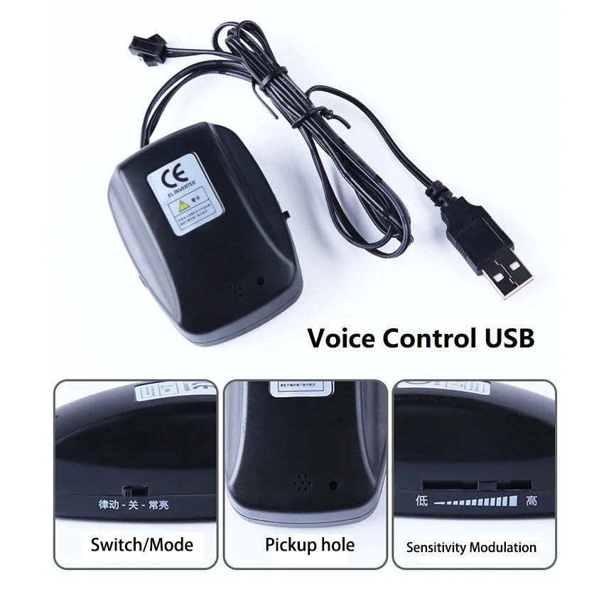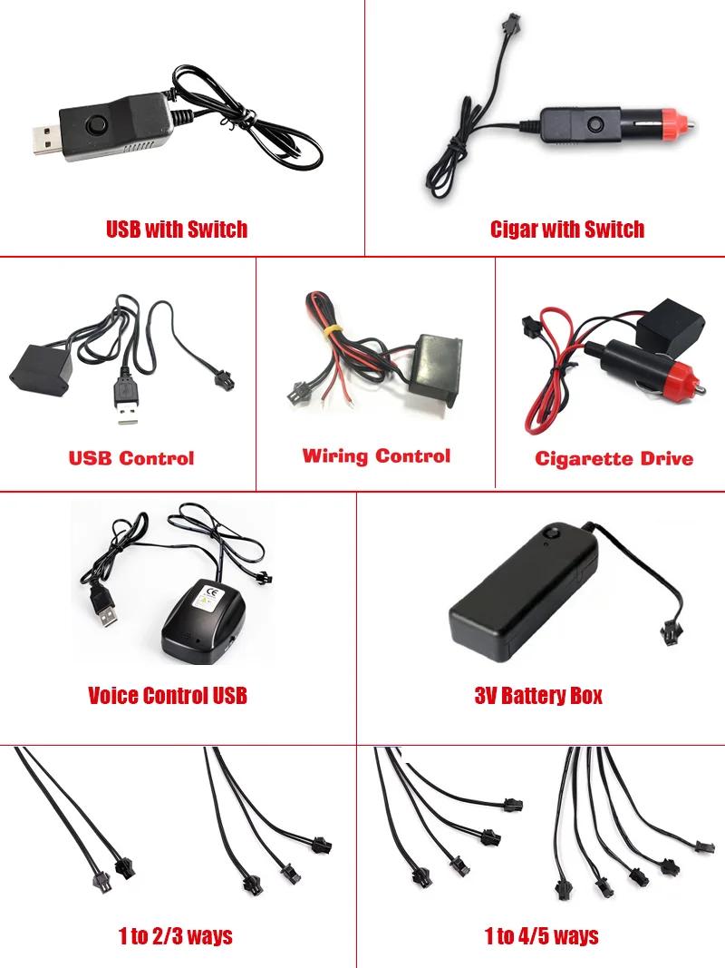 EL Wire Driver Big USB Car Ciggrette DC Battery Plug Adapter Voice Controller Cable 1 To 2/3/4/5 Splitter Connectors Neon Light