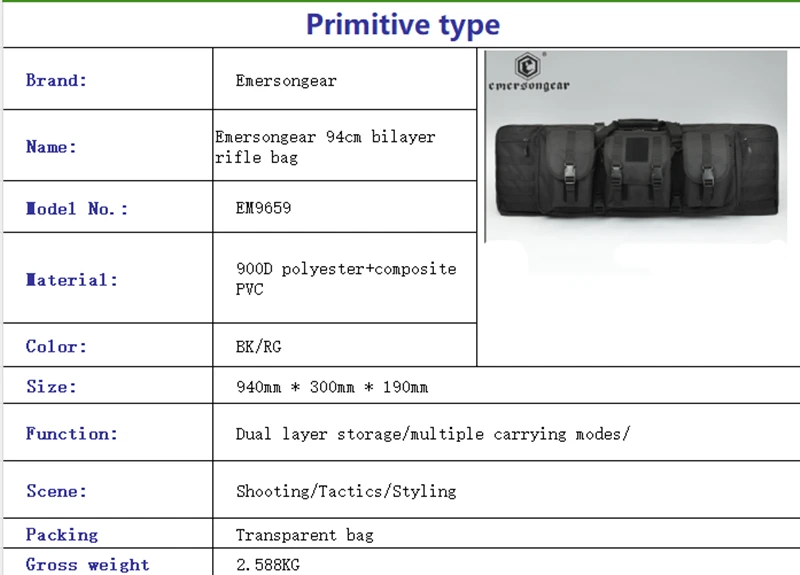 Emersongear Tactical Rifl Bag Double Gun Case Waterproof Carbine Backpack Molle System Rucksack Transportation Bag 94CM