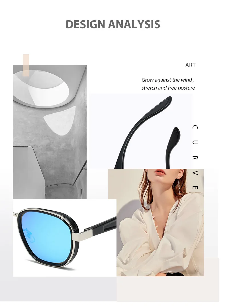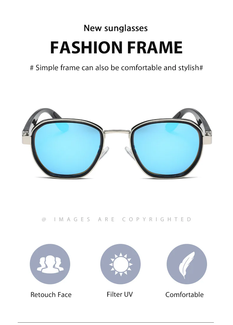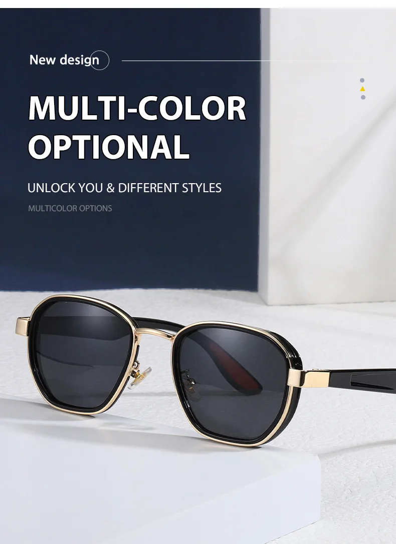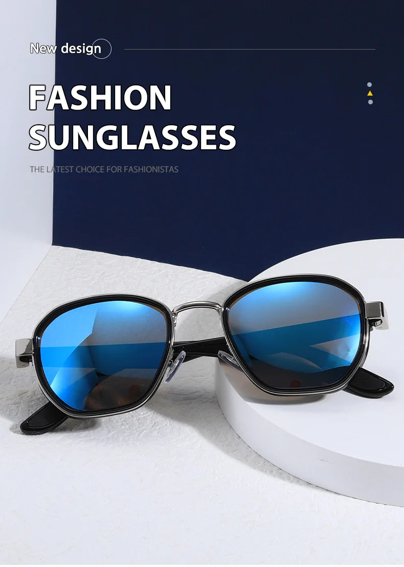 Europe and the United States retro polarized sunglasses men's HD dazzling oval frame sunglasses Hipster glasses shades