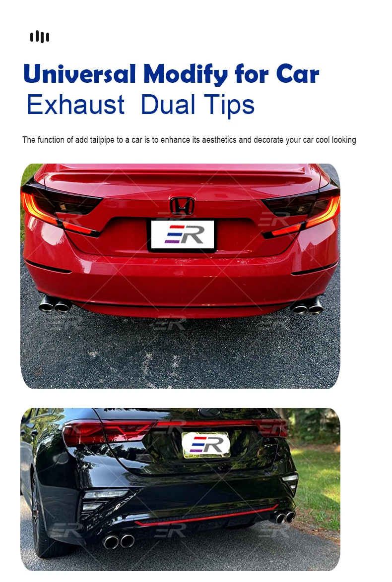 1 pcs ER Exhaust Racing Double Exit Exhaust Pipe Mufflers Nozzle Decoration Universal Stainless modify and Upgrade.
