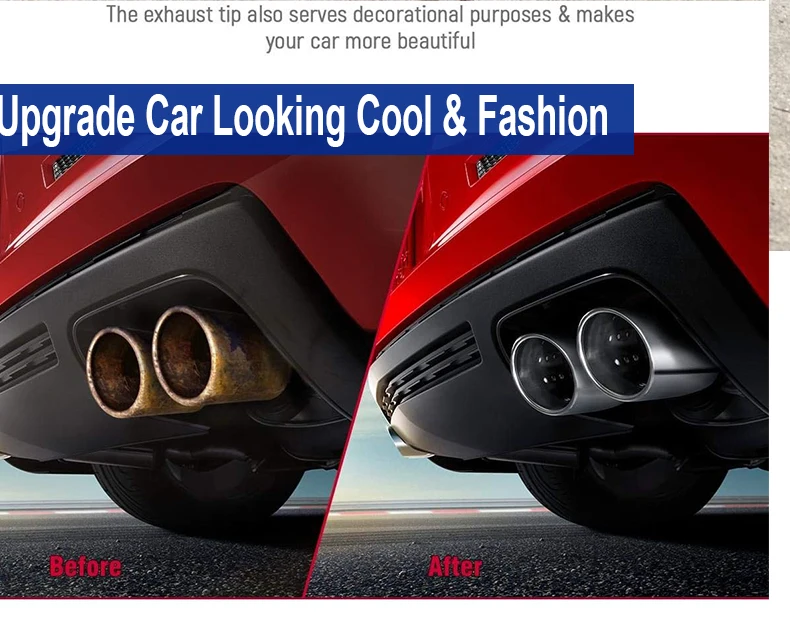 2.Ideal for DIY, Perfect replacement of your old or damaged exhaust tips. Effectively protect exhaust pipe and make your car fascinating and personalized.