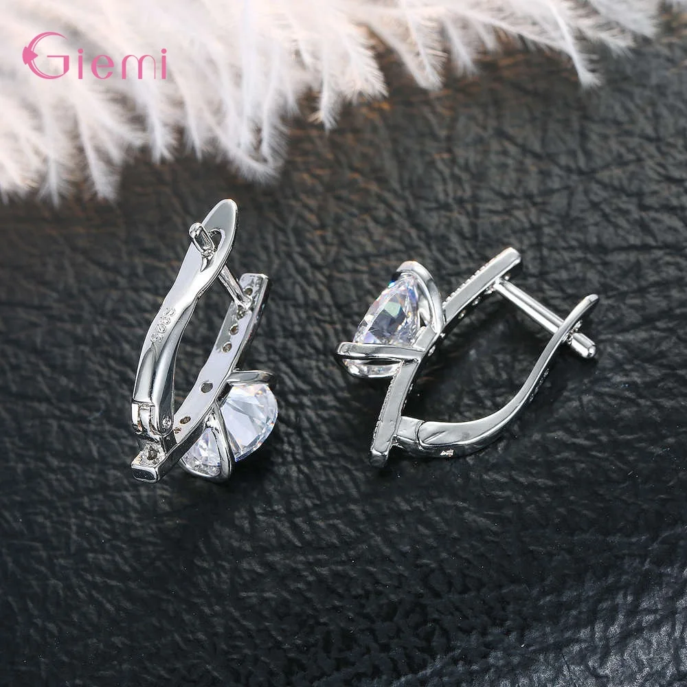 Fashion Simple 925 Sterling Silver Cubic Zircon Hoop Earring for Women Girl Personality Rhinestone Earrings Jewelry Gift