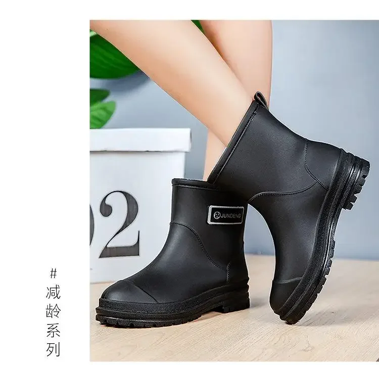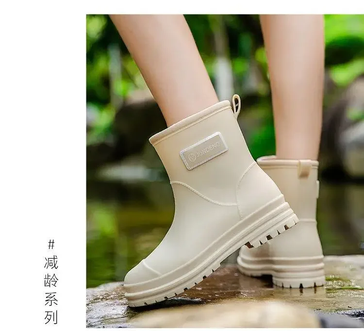 Fashionable Rain Boots for Women Thick Soles Versatile Korean Version Non-slip Wear-resistant, Casual Adult Outdoor Rubber Shoes