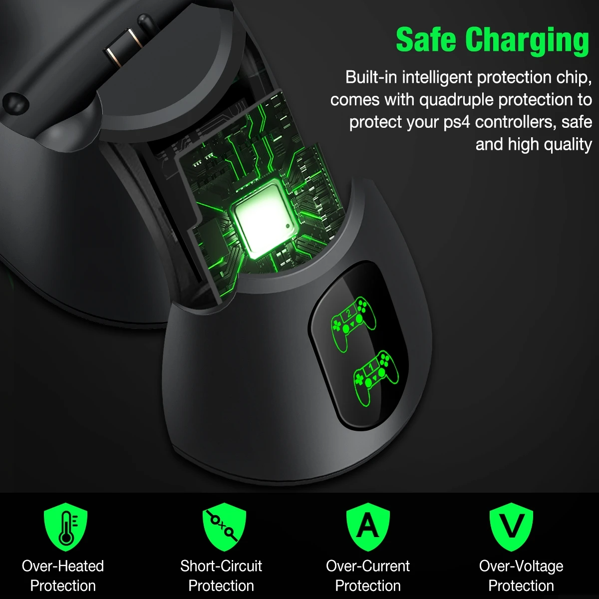 Built-in Protector Chip: Never over charged your PS4 controllers even charge it for overnight