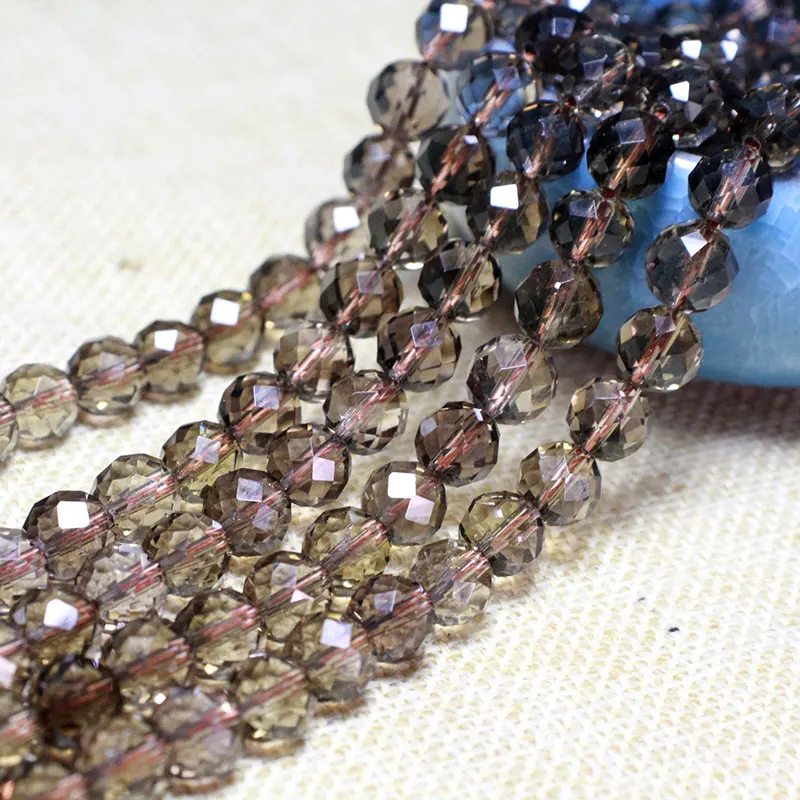 Fine Natural Stone Faceted Smoky Quartz Brown Round Gemstone Spacer Beads For Jewelry Making DIY Bracelet Necklace 6/8/10MM