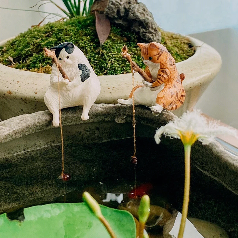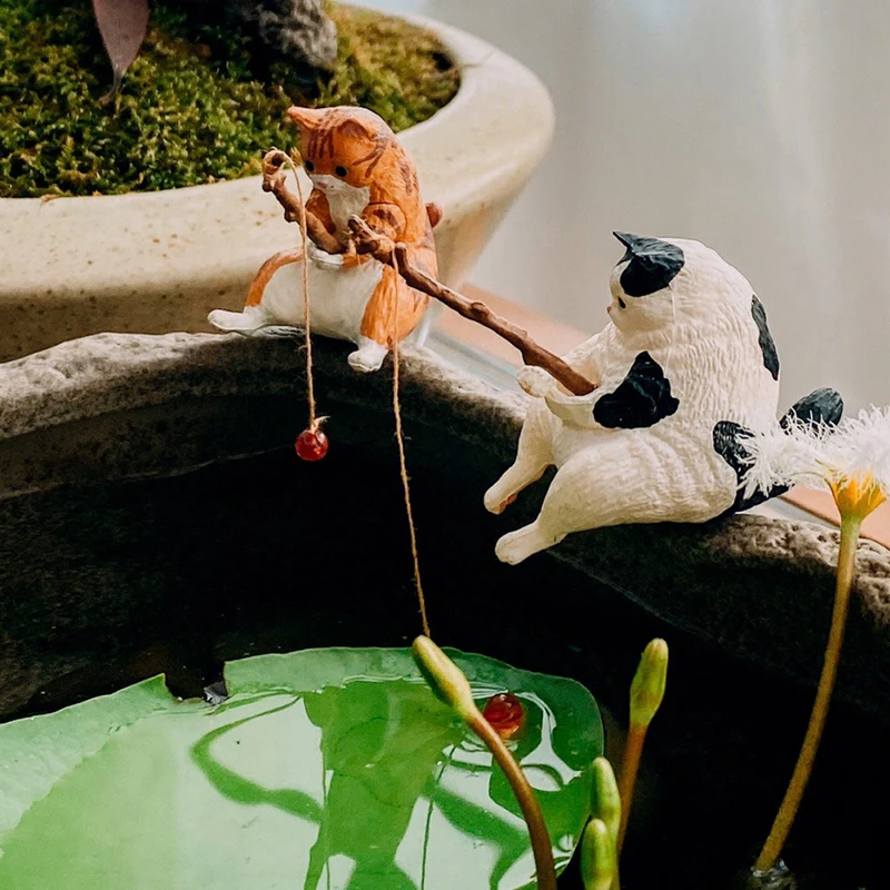 Fishing Cat Fish Tank Decoration Cartoon Fish Tank Decorated With Cute Fish Landscape Cat Fishing Good Weather Figurines
