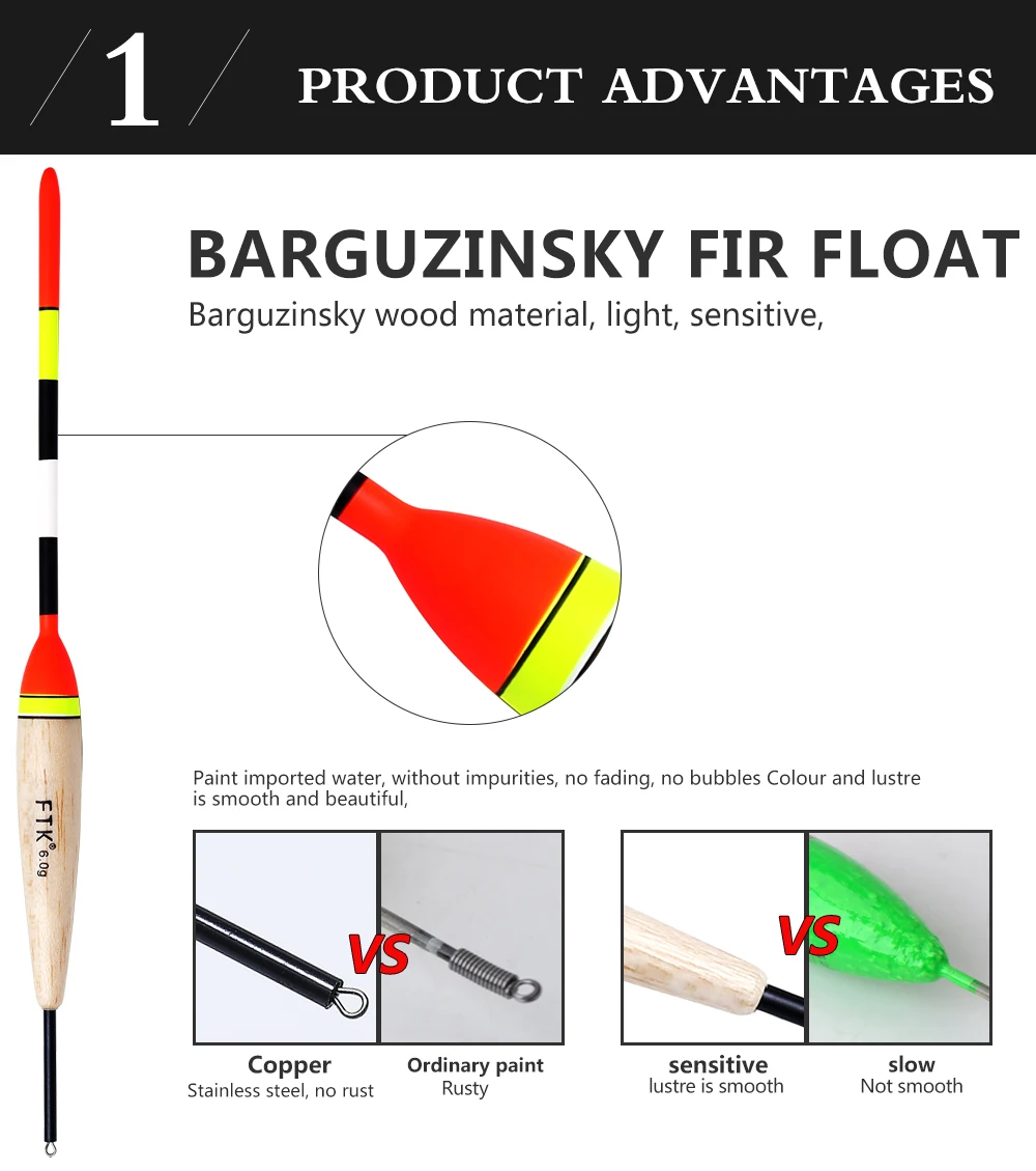 FTK Barguzinsky Fir Light On The Dark 5Pcs/Lot Fishing Float Length 19-23cm Float Weight 2g-6g For Carp Fishing